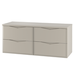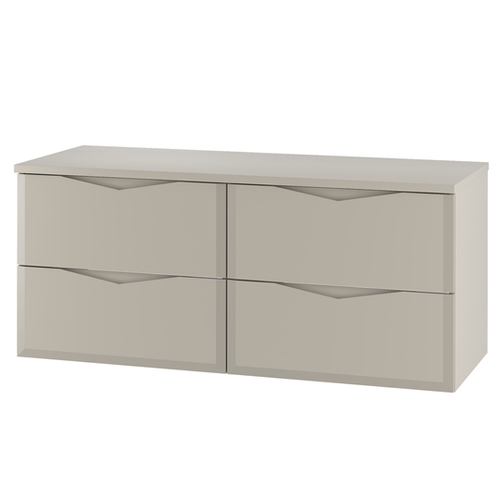 W skład kolekcji wchodzą eleganckie szafki pod umywalkę, wyposażone w blaty oraz ceramiczne umywalki, które zachwycają wyrafinowanym designem. Cichy domyk zastosowany w szufladach i drzwiczkach zapewnia wygodę użytkowania, a solidna konstrukcja gwarantuje trwałość na lata. Fronty w modnym kolorze kaszmiru, połączone z nowoczesnymi, minimalistycznymi detalami, podkreślają ekskluzywny charakter mebli.