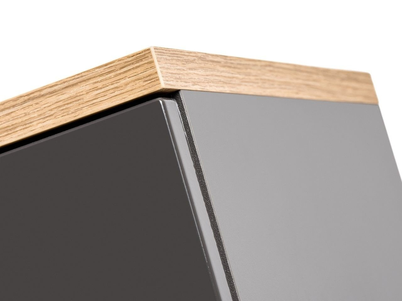 • Szafka wisząca górna z kolekcji Bali posiada front w szarym połysku oraz zawiasy z cichym zamykaniem.