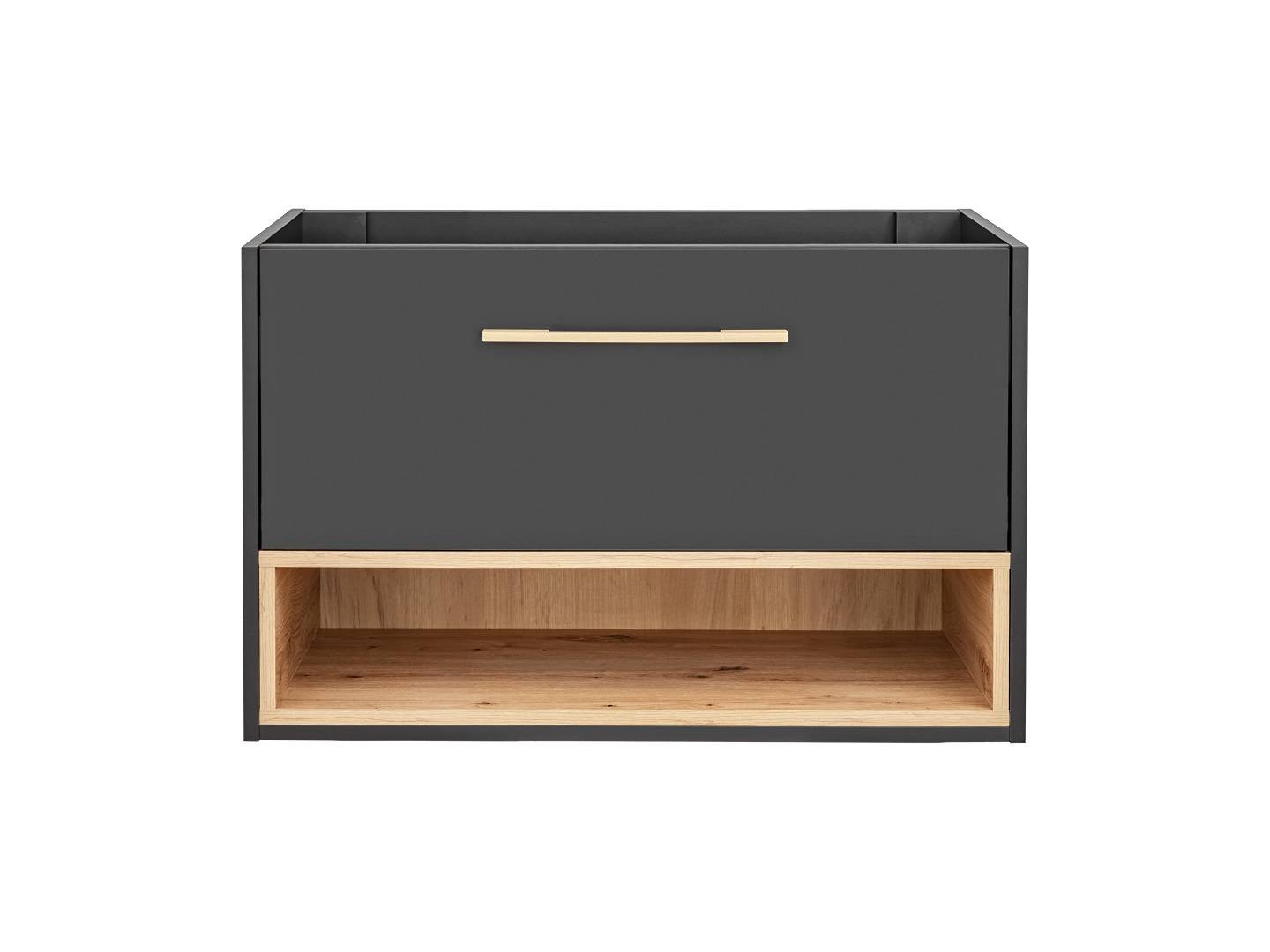 • Szafka pod umywalkę o szerokości 80 cm z jedną funkcjonalną szufladą i wnęką do przechowywania.