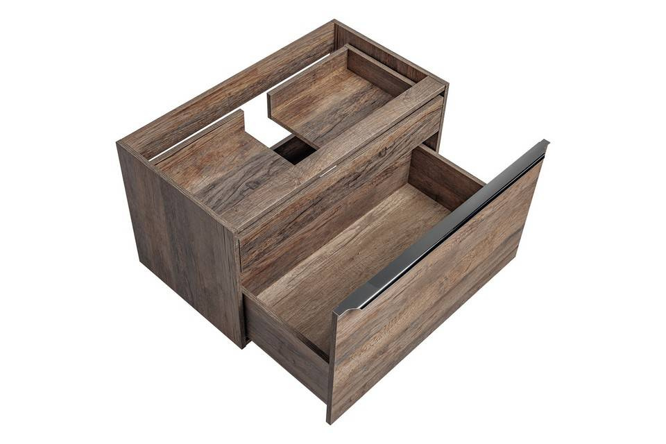 • Szafka pod umywalkę w rozmiarze 80 cm w kolorze dębu vintage.