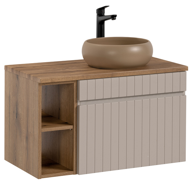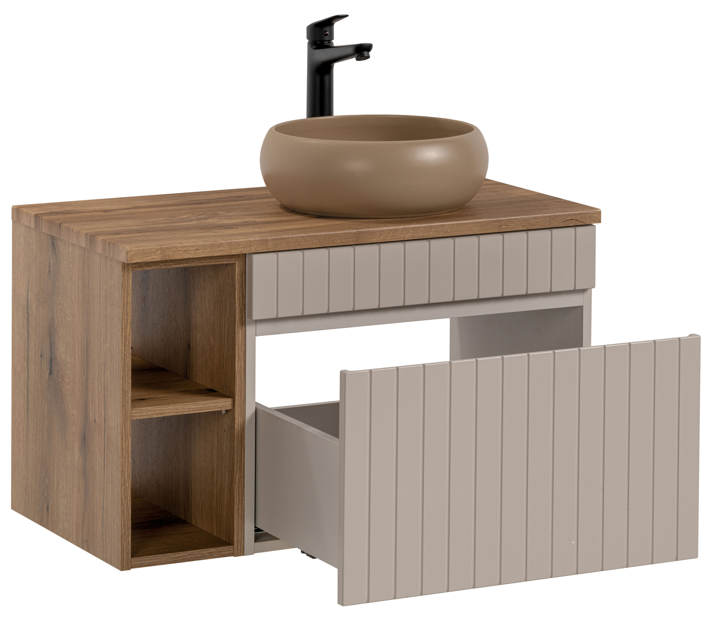 - Zestaw składa się z:Umywalka nablatowa ceramiczna WIKI-MC Matowy Cappuccino 36 cm ( 36 | 36 | 12 ), Blat Łazienkowy 80 cm Oak Coast Evoke ( 80,4 | 46 | 2,5 ), Szafka pod umywalkę 60 cm Iconic Cashmere ( 60 | 45,6 | 46 ), Szafka niska Iconic Oak Coast Evoke ( 20 | 44,5 | 46 )