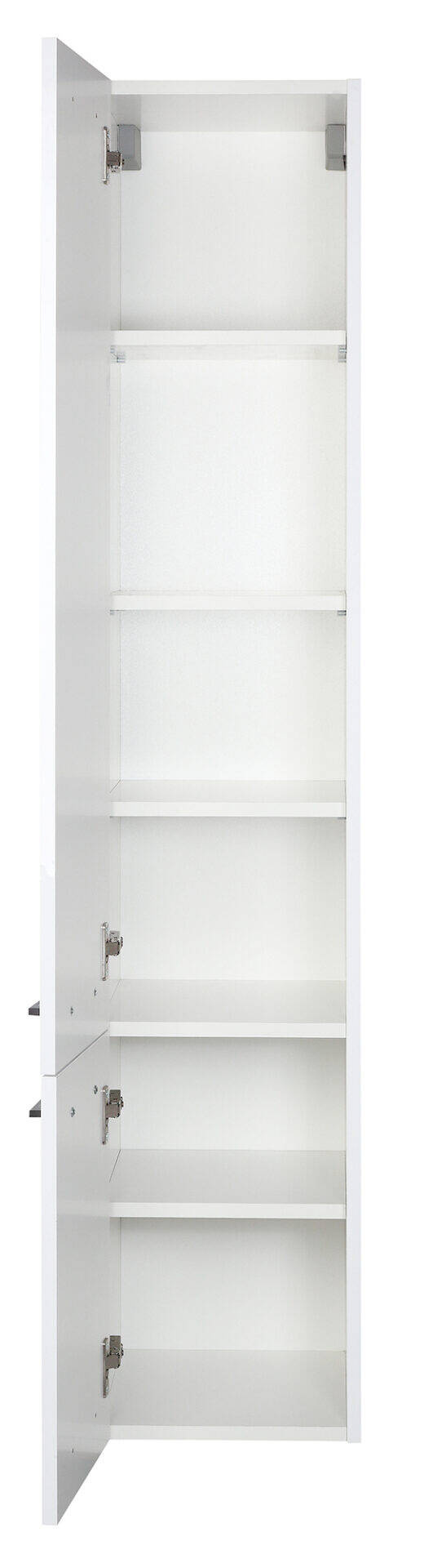• Słupek Astor Victoria to elegancka szafka w białym połysku. Wykonana z lakierowanej płyty, posiada 4 półki i 2 drzwi z cichym domykiem. Chromowane uchwyty i metalowe zawiasy dodają nowoczesności. Idealna do samodzielnego montażu.