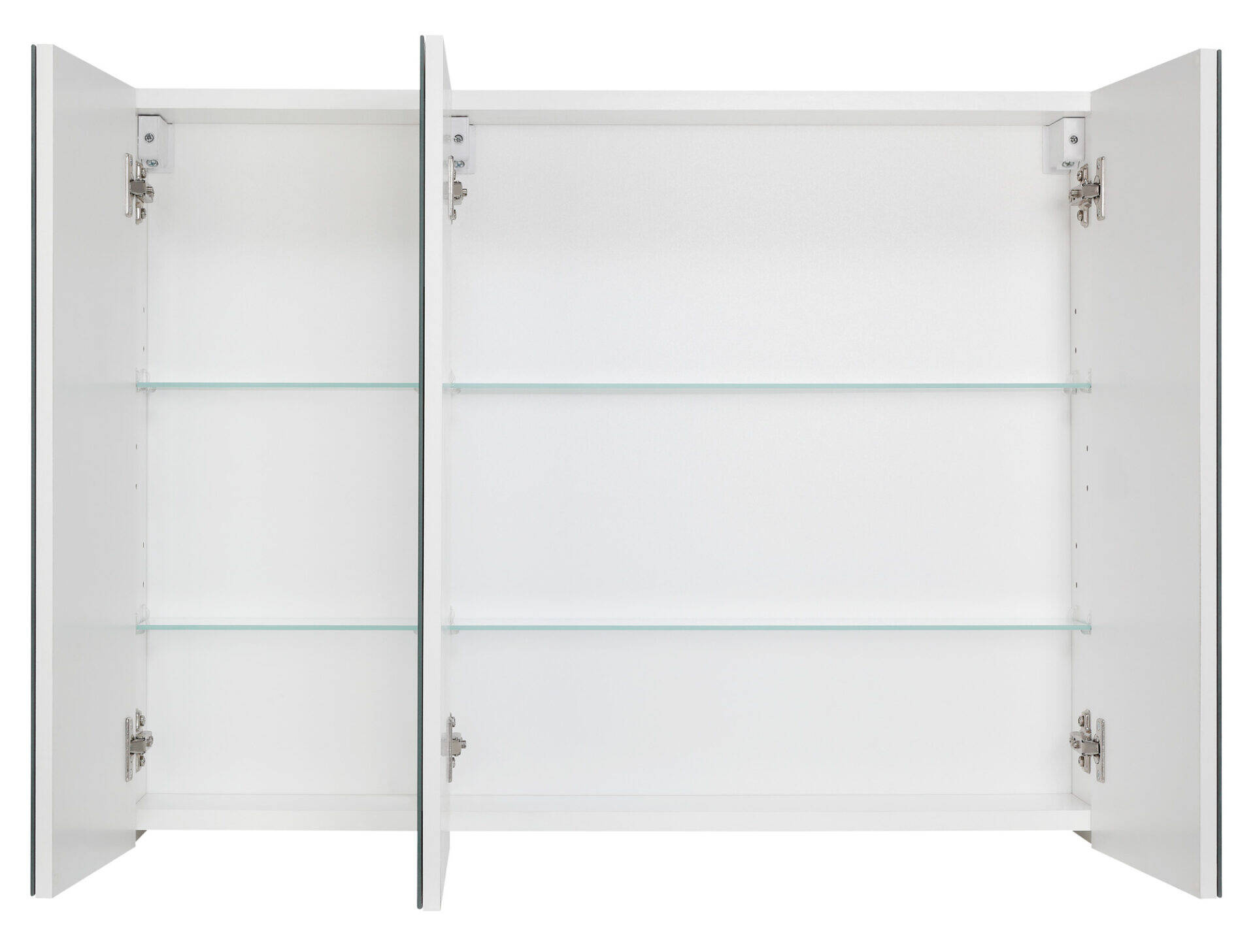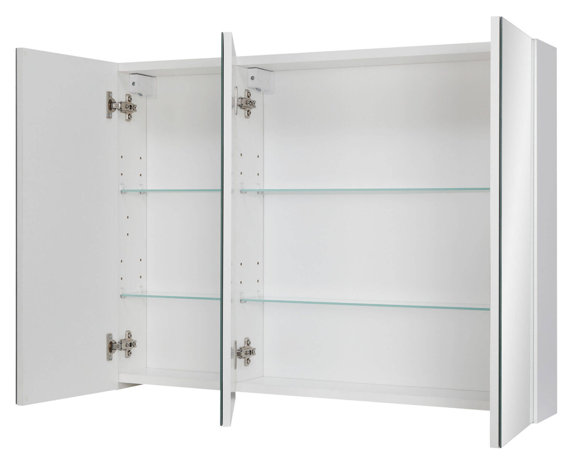 Elegancka szafka Astor z lustrem w białym połysku, idealna do nowoczesnych łazienek. Wykonana z płyty laminowanej, zawiera 4 szklane półki i 3 drzwi z cichym domykiem. Metalowe, chromowane uchwyty dodają klasy. Montaż do ściany.