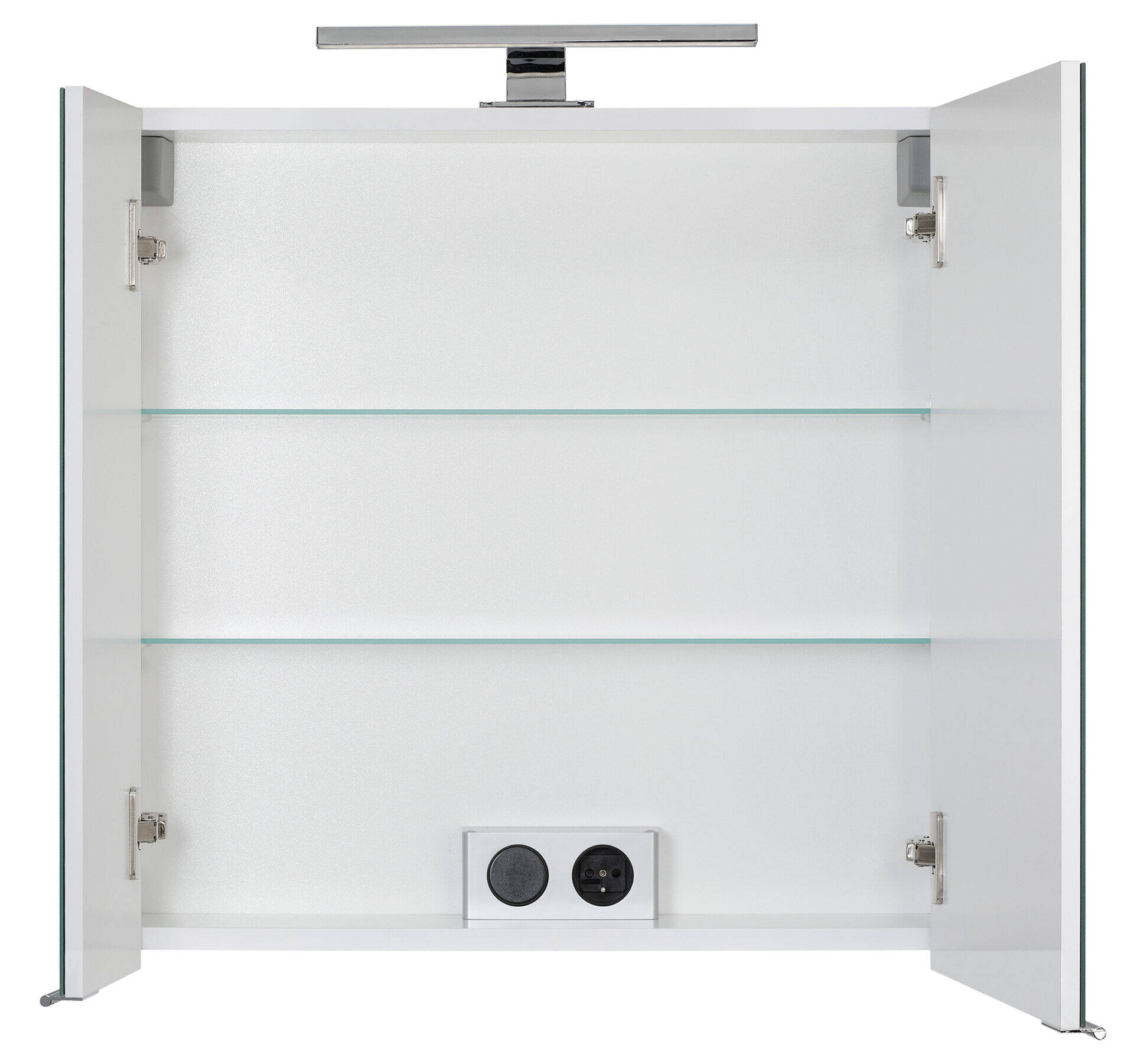 Szafka Astor z lustrem to elegancka i funkcjonalna propozycja do łazienki. Biały połysk, fronty z laminatu i lustrem, szklane półki, metalowe uchwyty i cichy domyk sprawiają, że nadaje wnętrzu nowoczesny styl. Dodatkowo zawiera oświetlenie LED i gniazdko.