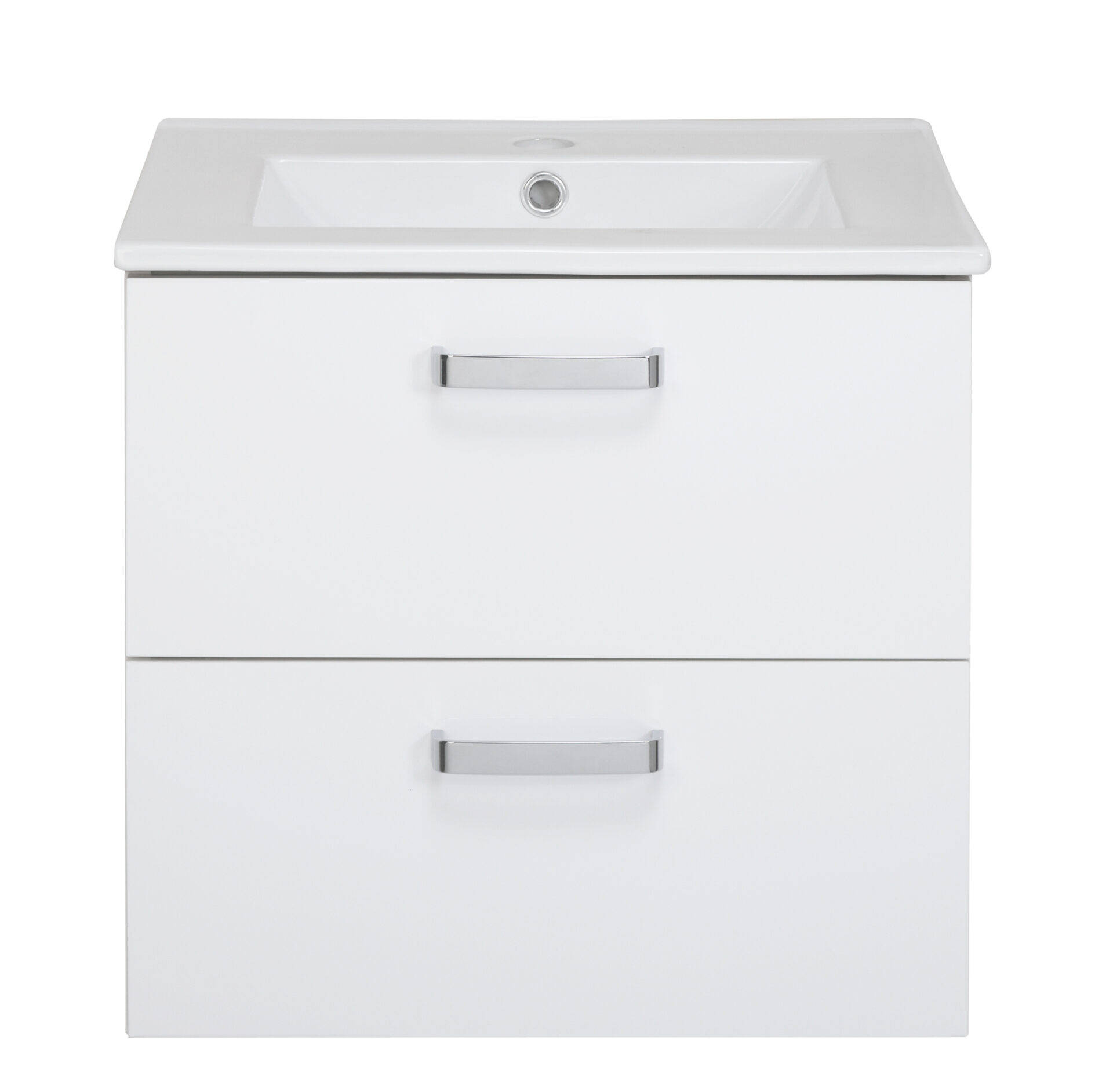 Szafka Astor z umywalką Toscania w białym kolorze łączy elegancję z funkcjonalnością. Wykonana z płyty laminowanej z cichym domykiem i metalowymi zawiasami, oferuje 2 pojemne szuflady. Chromowane uchwyty dodają nowoczesności.
