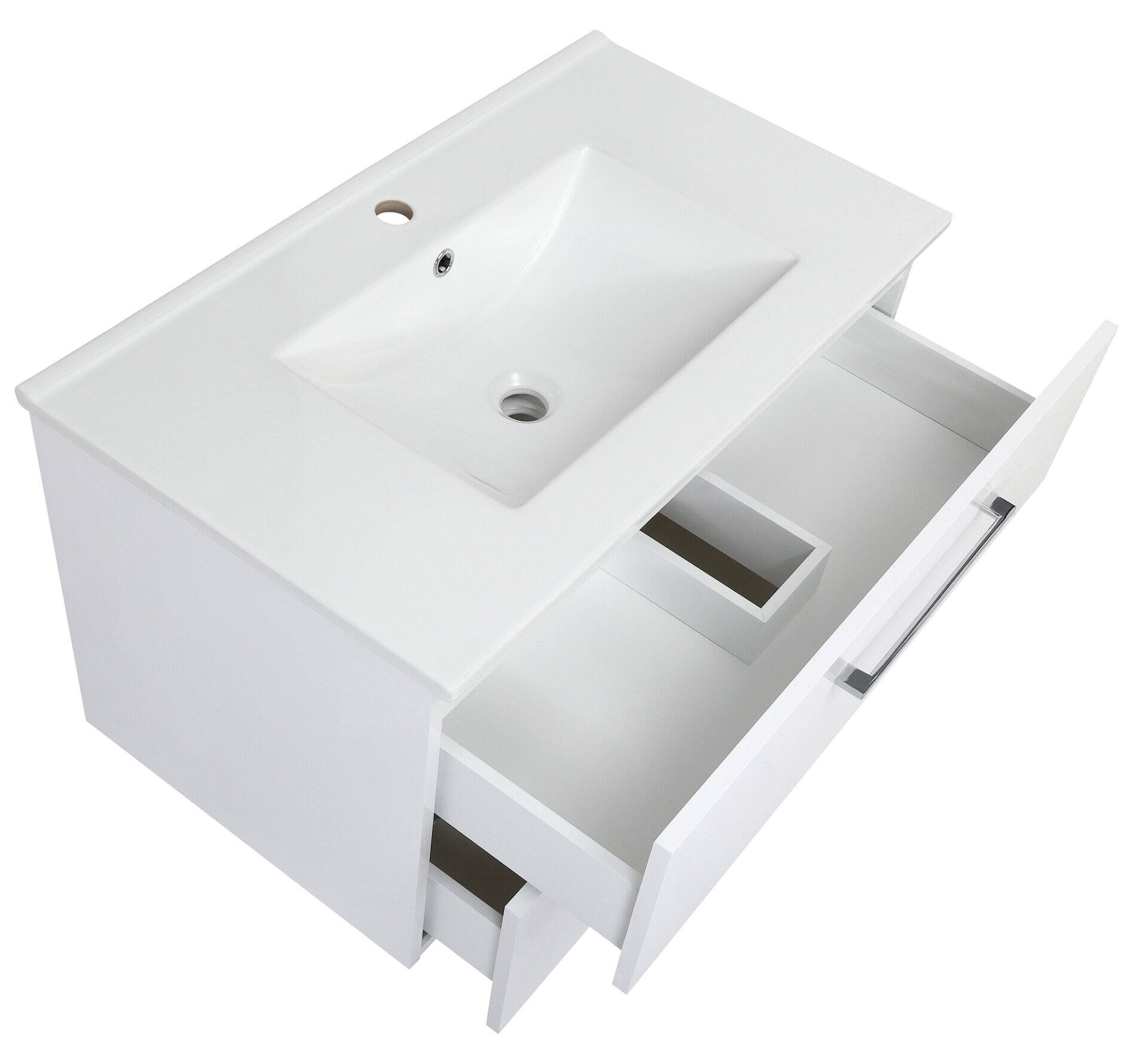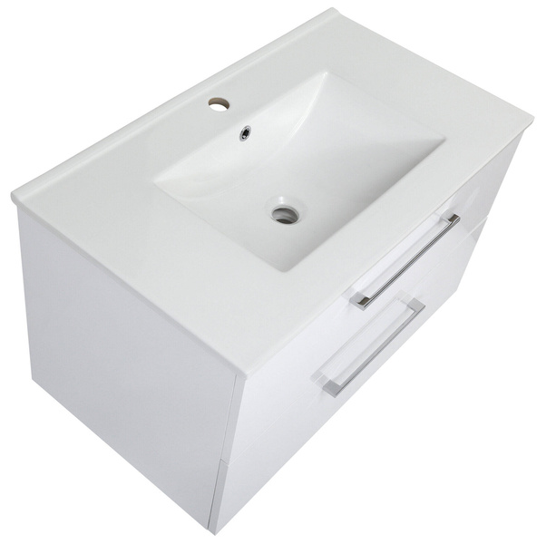 - Biała szafka Astor z umywalką Victoria 80 cm to elegancka propozycja dla nowoczesnych łazienek. Wykonana z lakierowanej płyty, z chromowanymi uchwytami i metalowymi nogami. Posiada 2 szuflady z funkcją cichego domyku oraz ceramiczną umywalkę.