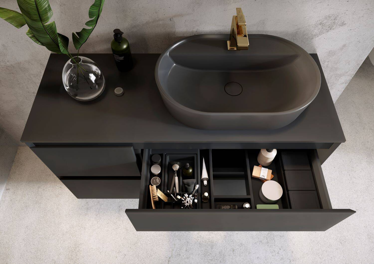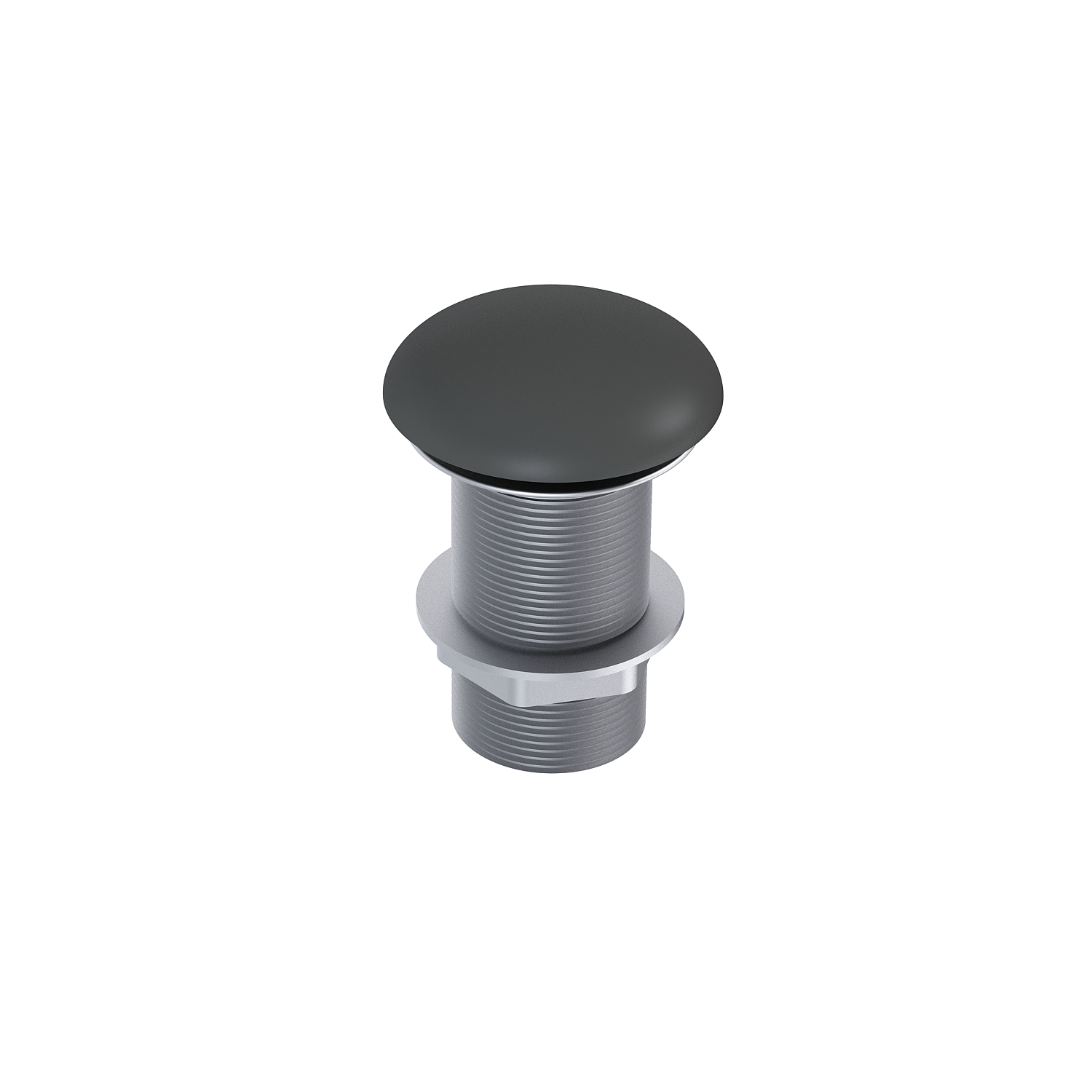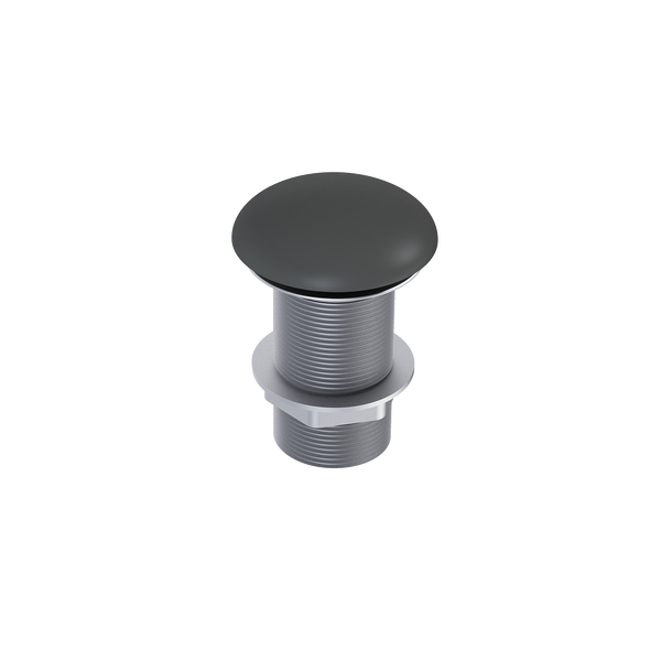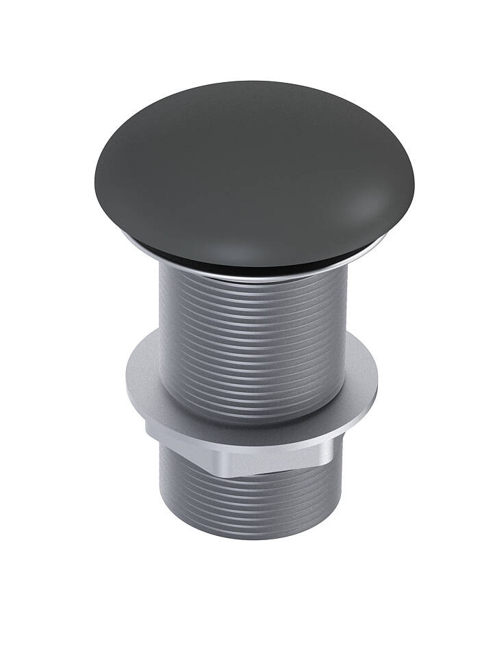 Elegancki korek umywalkowy klik-klak w matowym kolorze antracyt, idealny dla umywalek nablatowych. Intuicyjny w obsłudze dzięki systemowi push to open, bez przelewu.