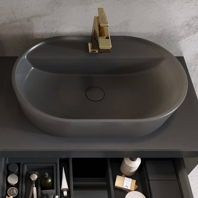 Wykonany z wysokiej jakości ceramiki, korek umywalkowy Elita charakteryzuje się matowym wykończeniem w głębokim, eleganckim odcieniu anthracite. Barwa ta idealnie komponuje się z kolorystyką popularnych umywalek nablatowych, a matowe wykończenie dodaje wzornictwu nowoczesnej subtelności. Nieoceniony detalem jest brak przelewu, co sprawia, że korek ten jest specjalnie przystosowany do współpracy z umywalkami bez tej funkcji.