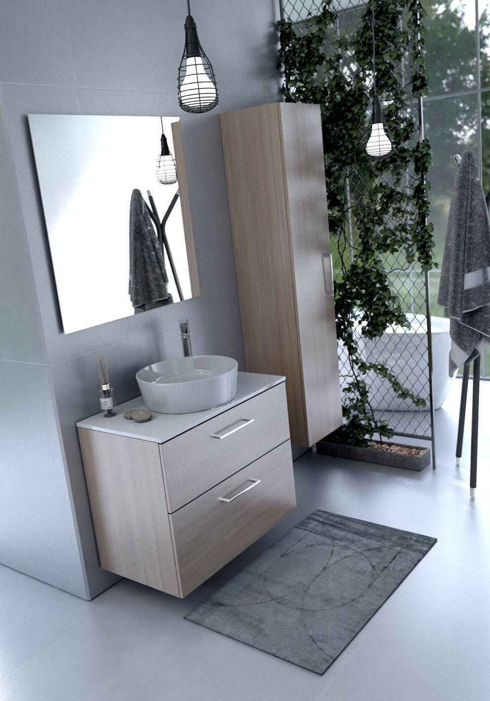 - Słupek łazienkowy GEO o szerokości 35 cm w kolorze Dąb Ubran Jasny