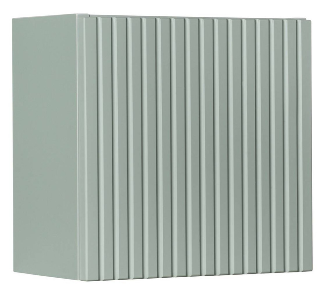 Wykończona w stylowym kolorze Reed Green, szafka wykonana jest z laminowanej płyty oraz płyty MDF, zapewniając trwałość i solidność. Pionowe, frezowane ryfle na frontach dodają wyjątkowego charakteru, podkreślając nowoczesny design mebla.