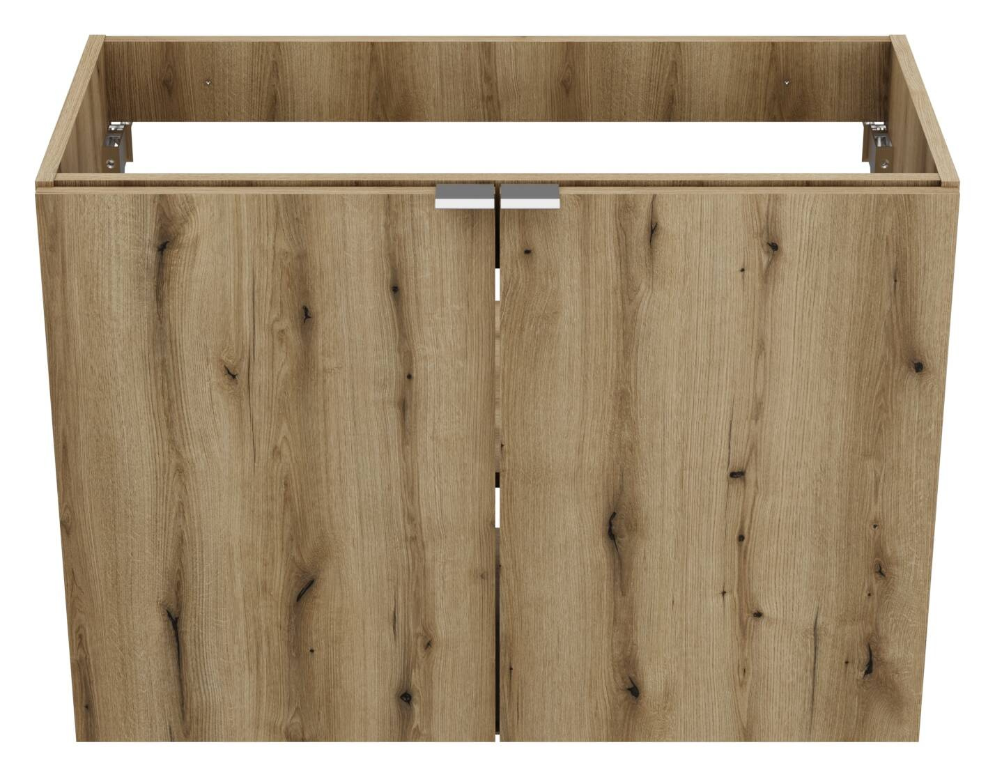 • Szafka pod umywalkę Nova Oak, 80x39x57 cm, płyta laminowana Dąb Cost Evoke. Cichy domyk, chromowane uchwyty, 1 stała i 1 regulowana półka.