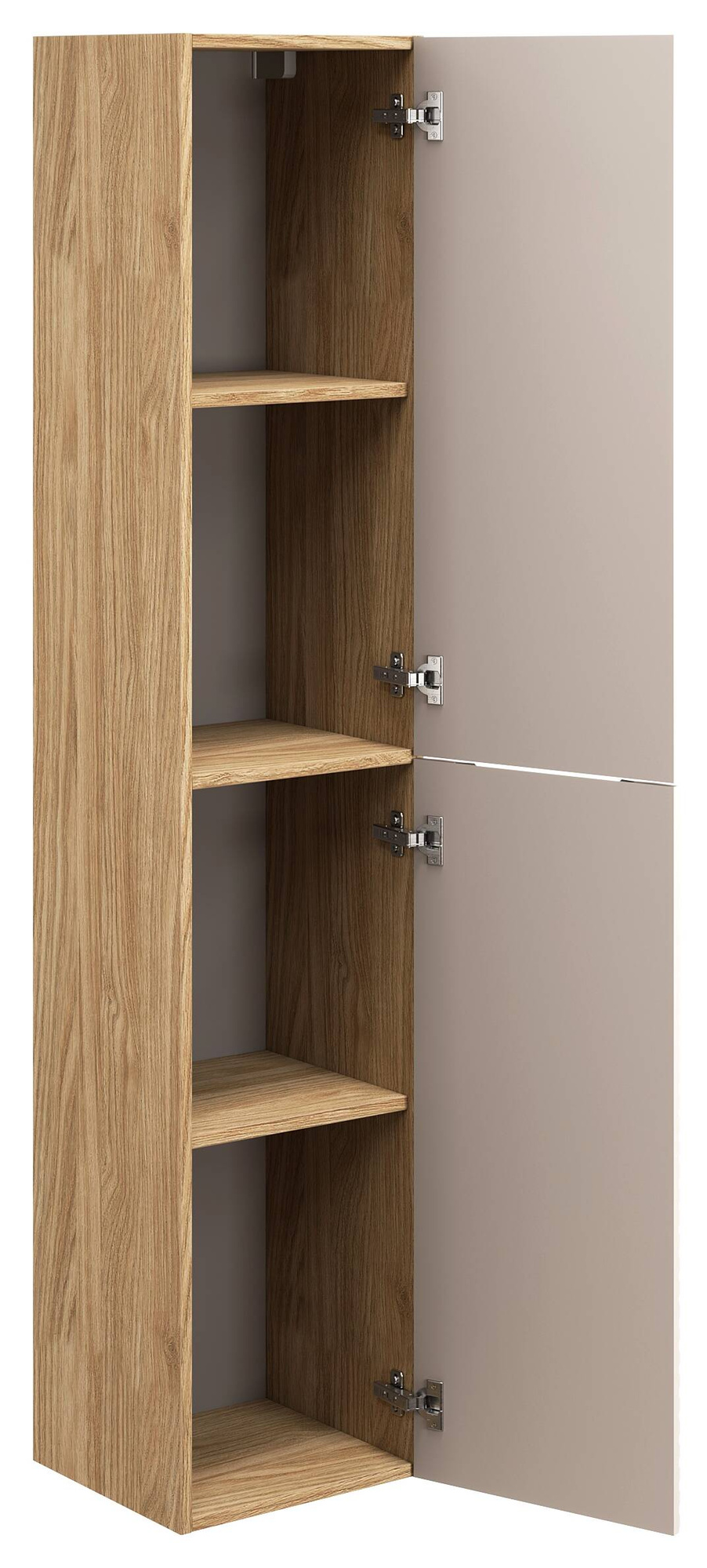 Słupek wysoki OCEAN BEIGE marki Comad o wysokości 170 cm, szerokości 40 cm i głębokości 33 cm, w eleganckim beżskim kolorze z korpusem dębowym, posiada 4 półki i 2 drzwi z cichym domykiem. Idealny do powieszenia na ścianie, za montaż odpowiadają dołączone