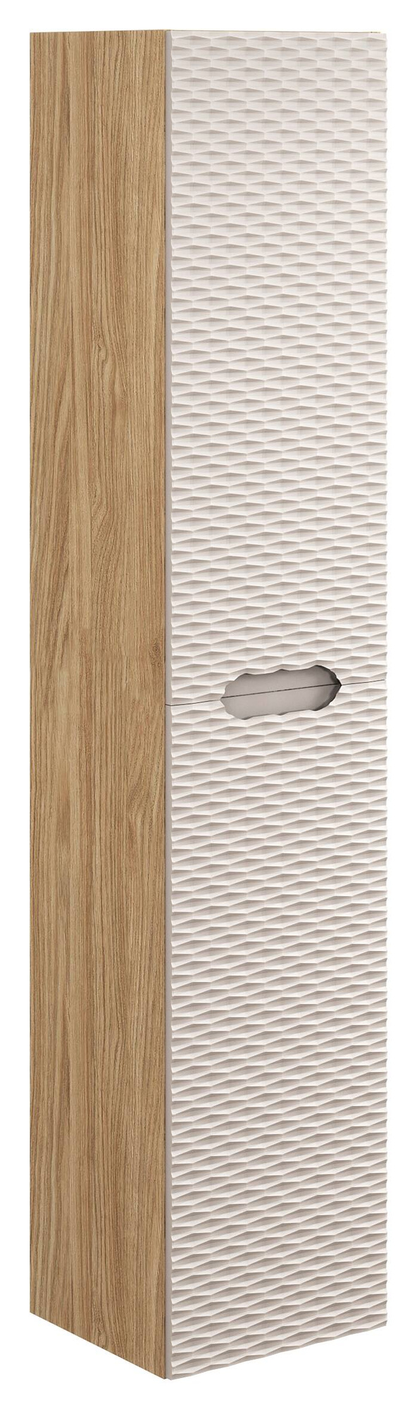 Wykonany z najwyższej jakości płyty laminowanej oraz płyty MDF, słupek OCEAN BEIGE zachwyca połączeniem dwóch eleganckich kolorów: beżu oraz dębu olejowanego. Subtelnie frezowane fronty dodają mu wyjątkowego charakteru, a zintegrowane uchwyty w kolorze beżu podkreślają nowoczesny design.