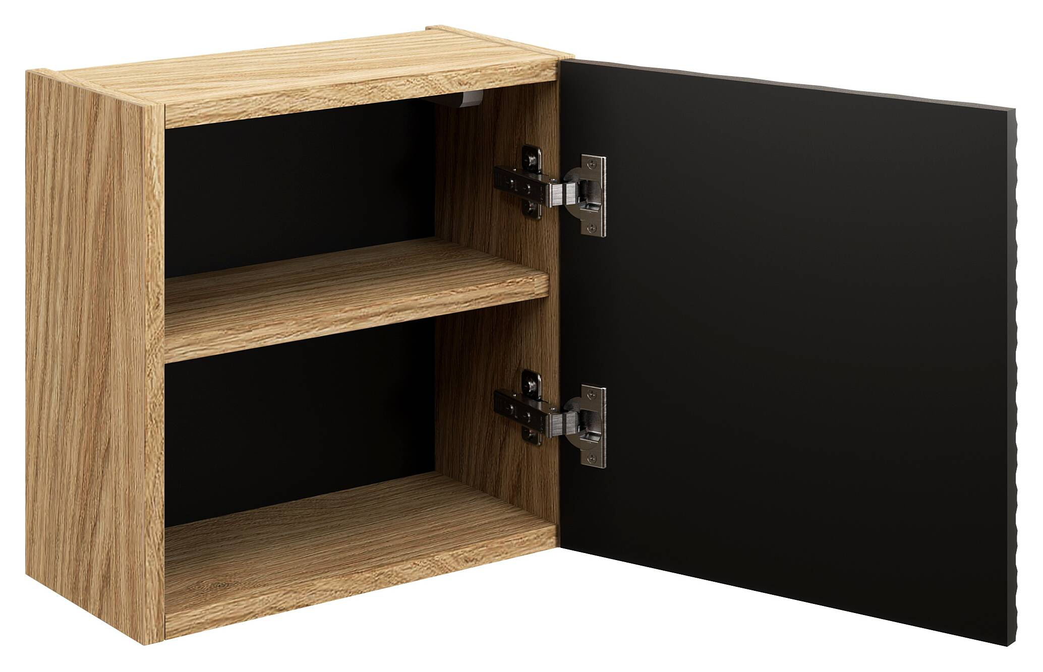 - Elegancka szafka wisząca OCEAN BLACK od marki Comad w kolorze czarnego matu z olejowanym dębowym wykończeniem. Wykonana z płyty laminowanej i MDF. Wyposażona w drzwi z cichym domykiem oraz zintegrowane uchwyty.