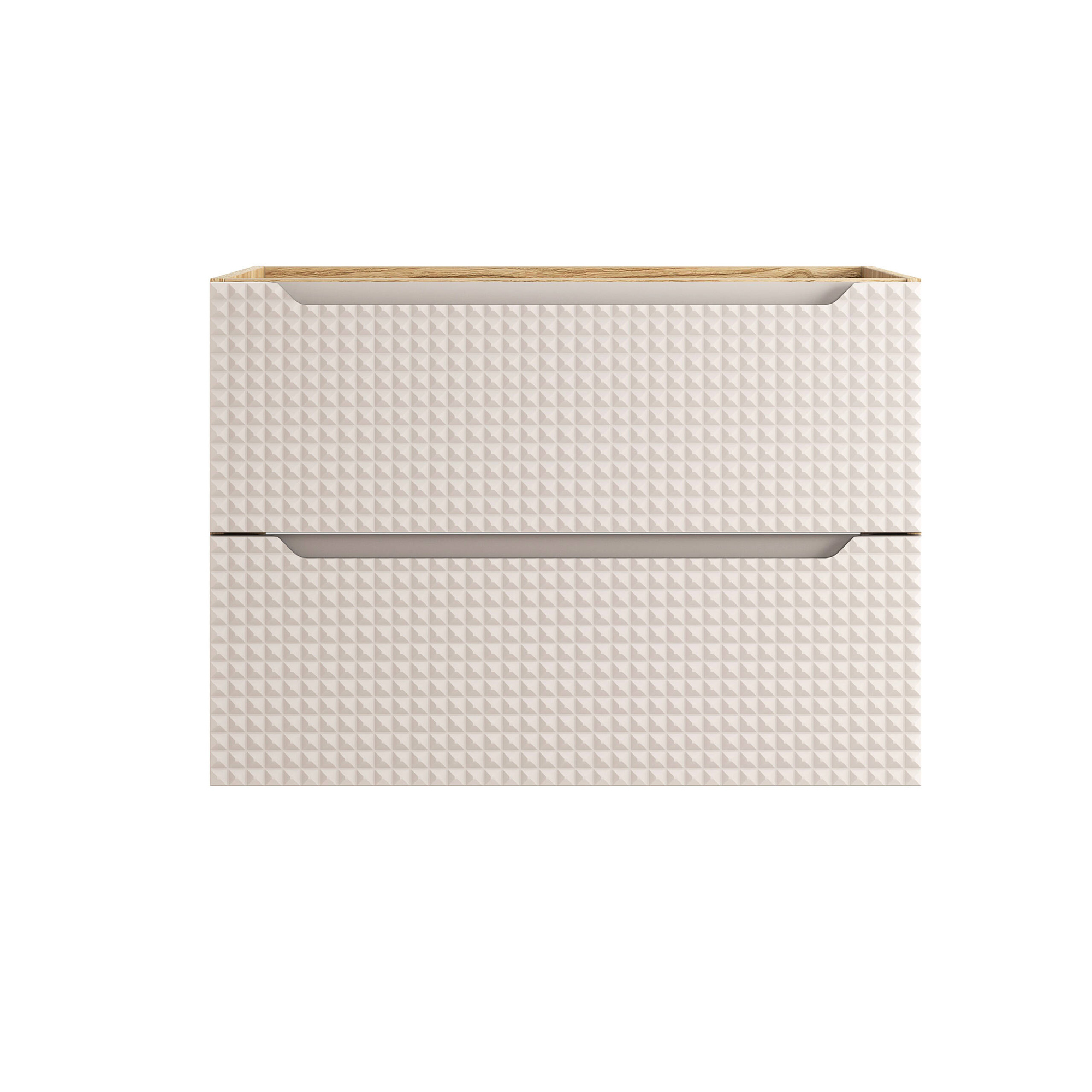 Szafka została zaprojektowana, by zapewnić zarówno stylowy wygląd, jak i codzienną funkcjonalność. Dzięki przestronnej konstrukcji i dwu szufladom, przechowywanie łazienkowych niezbędników staje się prostsze i bardziej uporządkowane. System cichego domyku oznacza, że szuflady otwierają się i zamykają bezszelestnie, co dodaje łazience odrobinę luksusu i komfortu użytkowania.