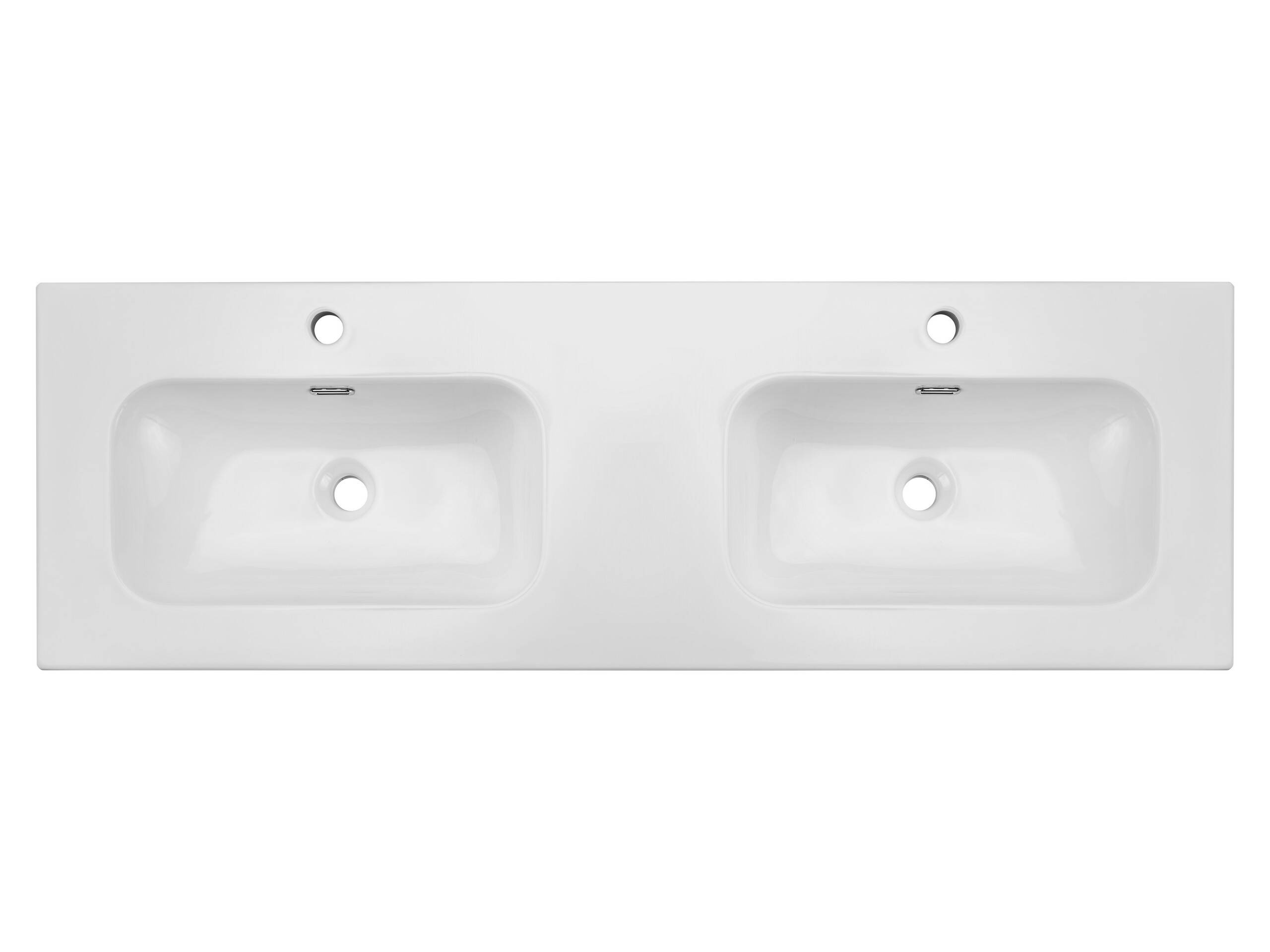 - Umywalka meblowa dwukomorowa ceramiczna 140 cm FLY 140D DP E-8073-140D w kolorze biały połysk.