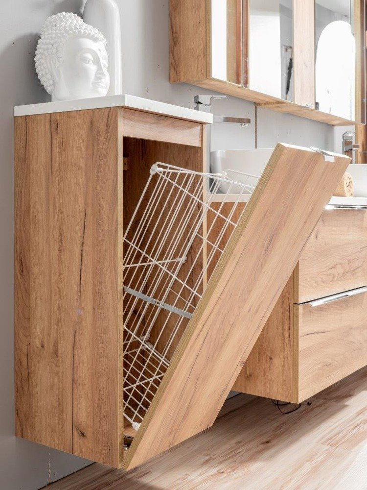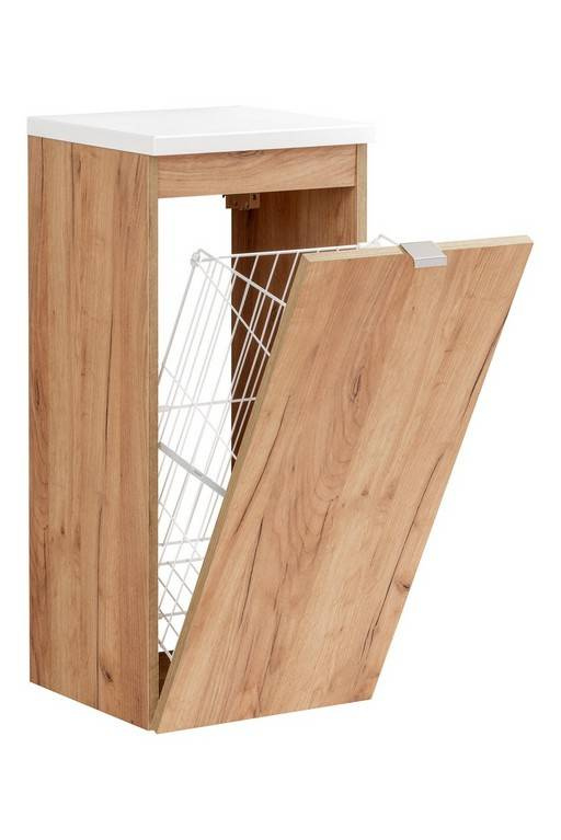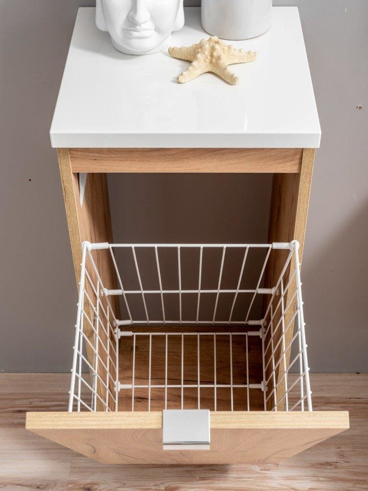• Szafka niska z dekorem dąb craft oraz koszem na pranie