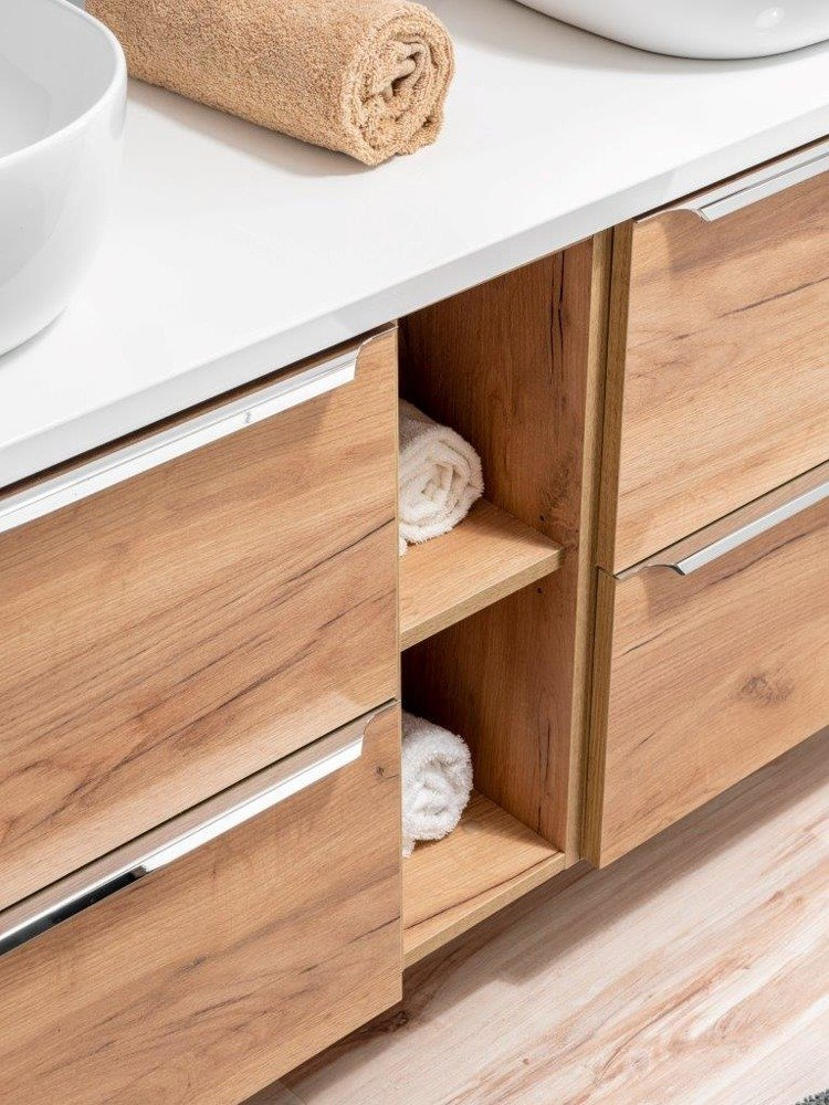- Słupek wysoki z lustrem z dekorem dąb craft z uchwytem krawędziowym