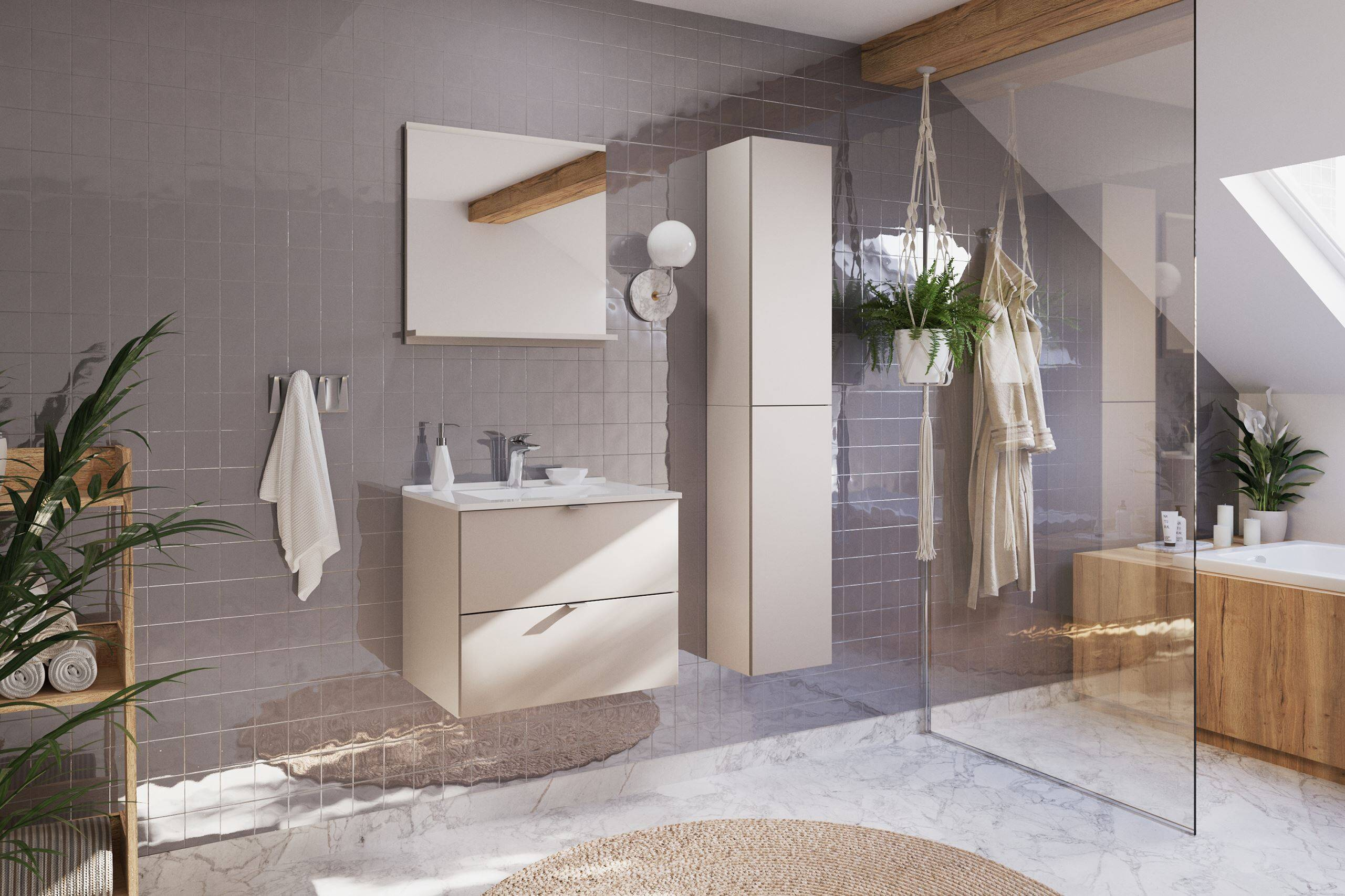 Zestaw Szafka z Umywalką Meblową 60 cm i Słupek Wysoki Dalia Cashmere