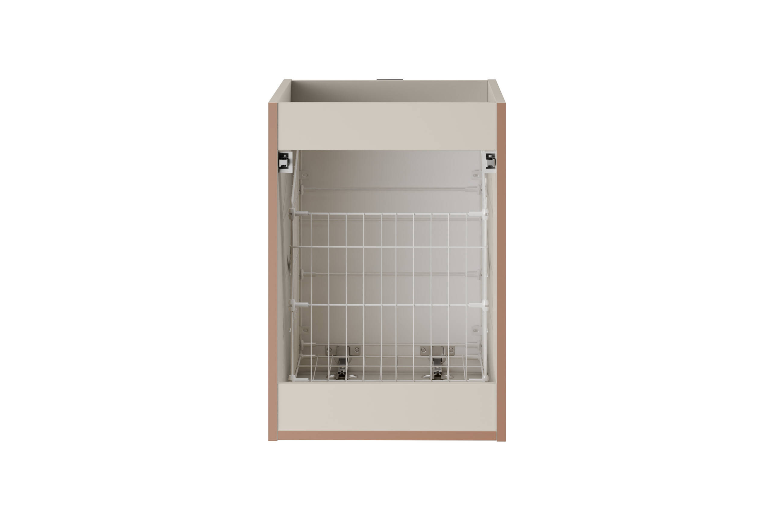 Stylowa szafka Bella Cashmere o kaszmirowym wykończeniu idealnie wpasuje się do każdej łazienki. Frezowane fronty z MDF dodają elegancji, a cichy domyk zapewnia wygodę. Wyposażona w kosz na pranie i możliwość zawieszenia na ścianie. I