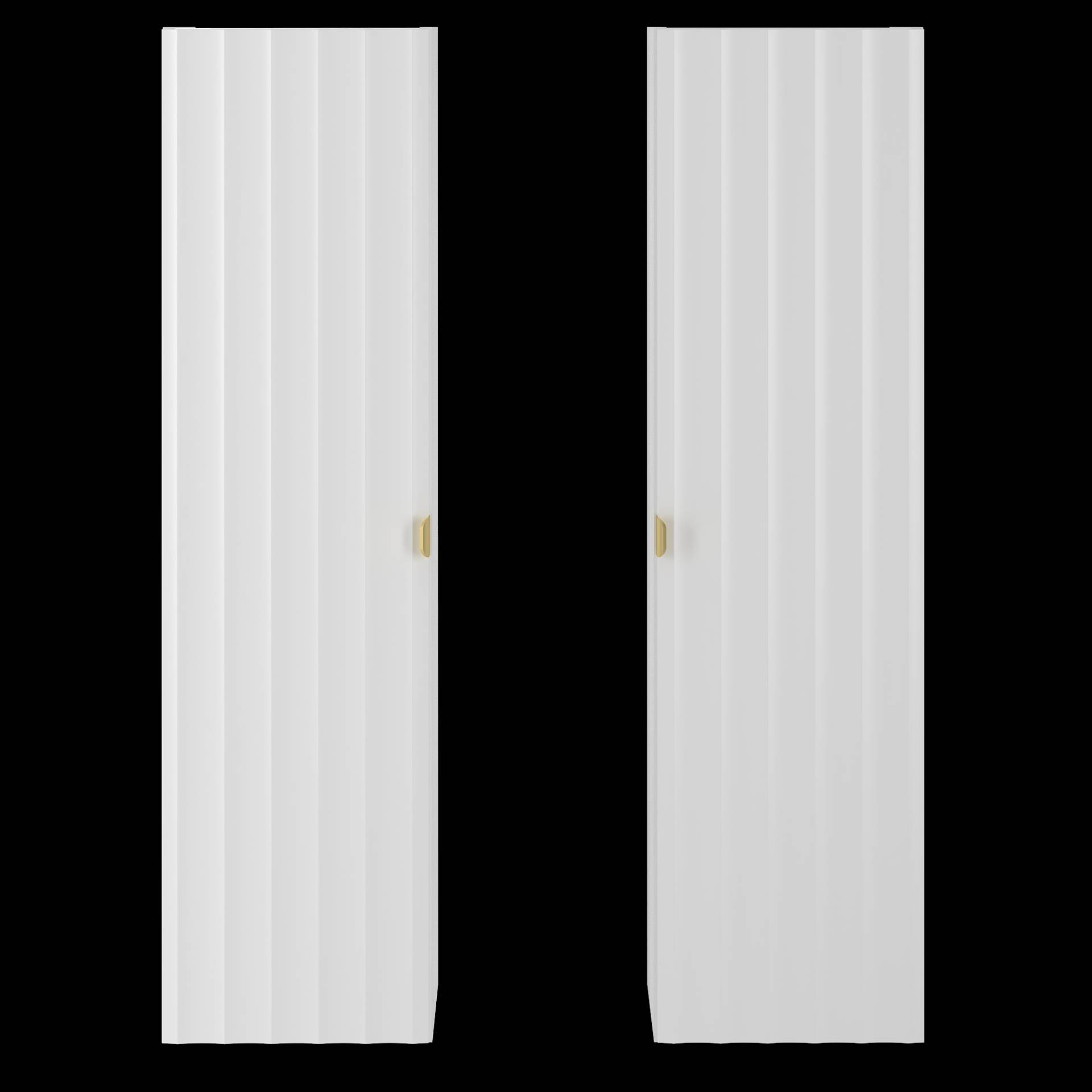 Elegancki słupek ARCOS-08 marki Megstyl, idealny do nowoczesnego wnętrza. Wykonany z wysokiej jakości płyty MDF, front w białym macie z metalowym uchwytem w szczotkowanym złocie. Wyposażony w puszkowe zawiasy i cichy domyk, oferujący funkcjonalność.