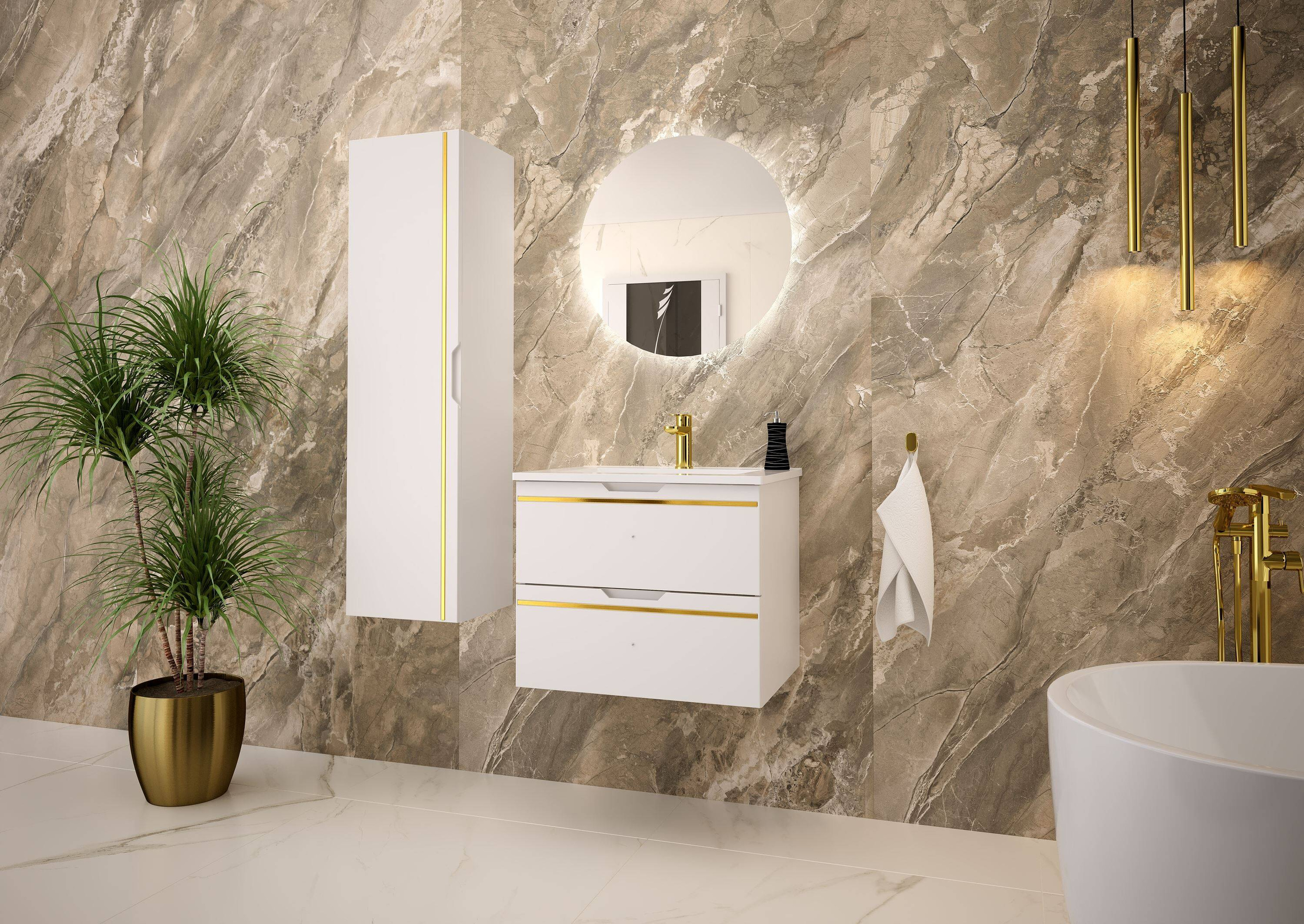 Produkowana z najwyższej jakości materiałów, takich jak płyta MDF i laminowana, gwarantuje trwałość i odporność na wilgoć, co jest niezwykle ważne w łazienkowych warunkach. Szafka ESPERO-01 to inwestycja na lata, która bez problemu sprosta wszystkim wymaganiom codziennego użytkowania.