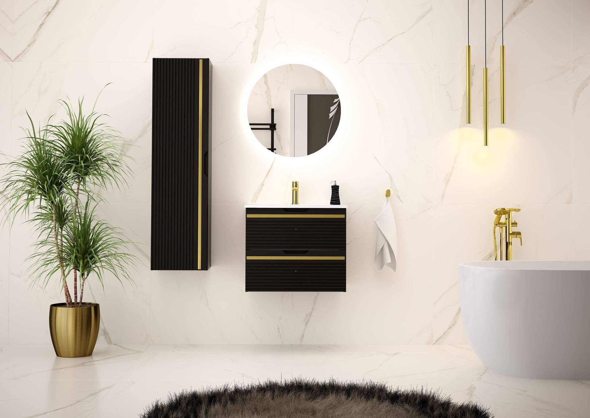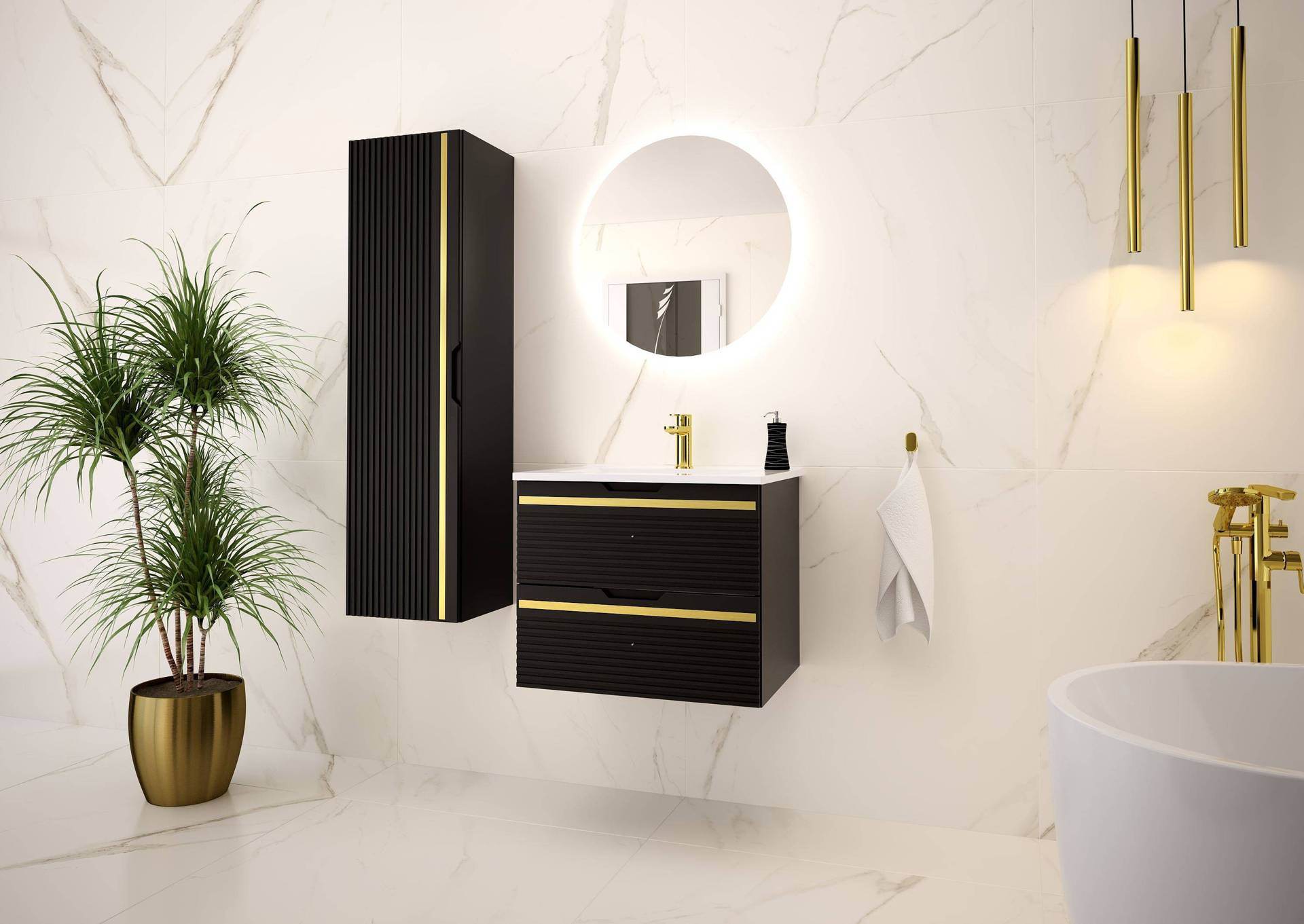 Odkryj elegancję i nowoczesność z naszą szafką pod umywalkę VESPER-02 marki Megstyl. Ten wyjątkowy element łazienkowy w kolorze czarnego matu przekształci każdą przestrzeń, nadając jej wyrafinowany charakter. Czarne, matowe wykończenie frontu i korpusu tworzy spójną estetykę, która doskonale sprawdzi się zarówno w minimalistycznych, jak i bardziej eklektycznych aranżacjach.