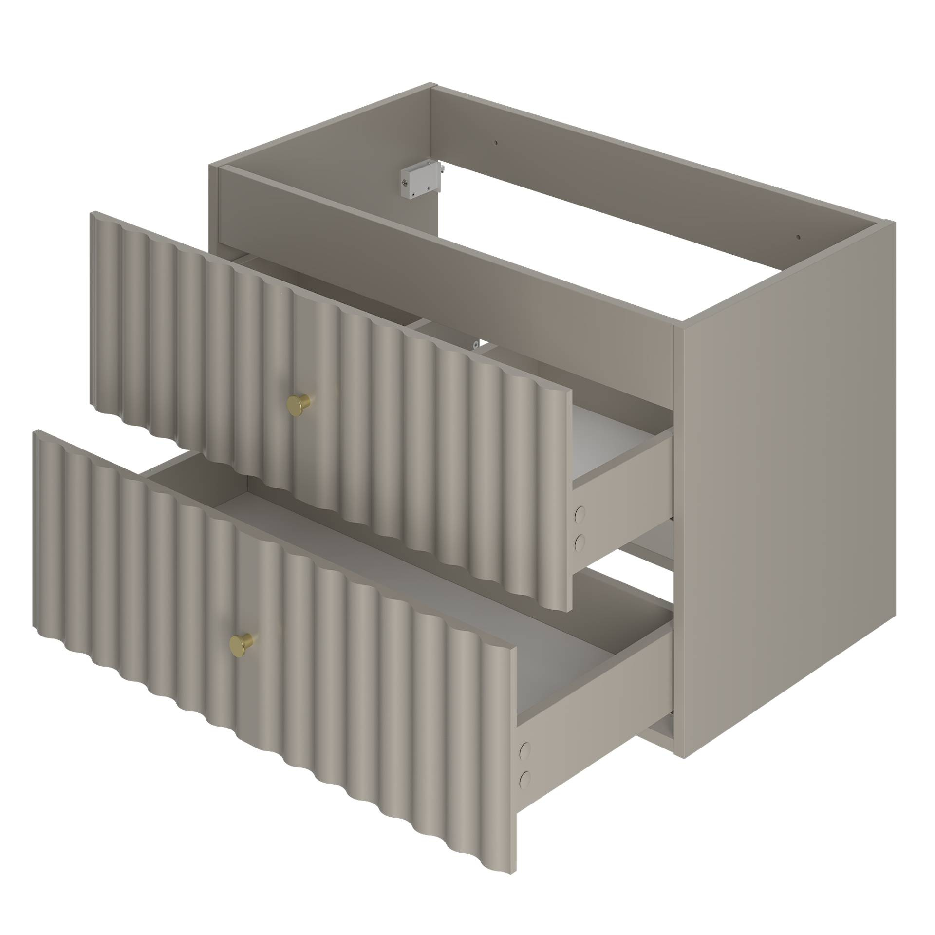 - Elegancka szafka pod umywalkę AQUA-01 to połączenie kaszmirowych frontów z metalowymi uchwytami w szczotkowanym złocie. Wykonana z płyty MDF oraz laminowanej, oferuje cichy domyk i w zestawie posiada blat. Idealna do nowoczesnych wnętrz.