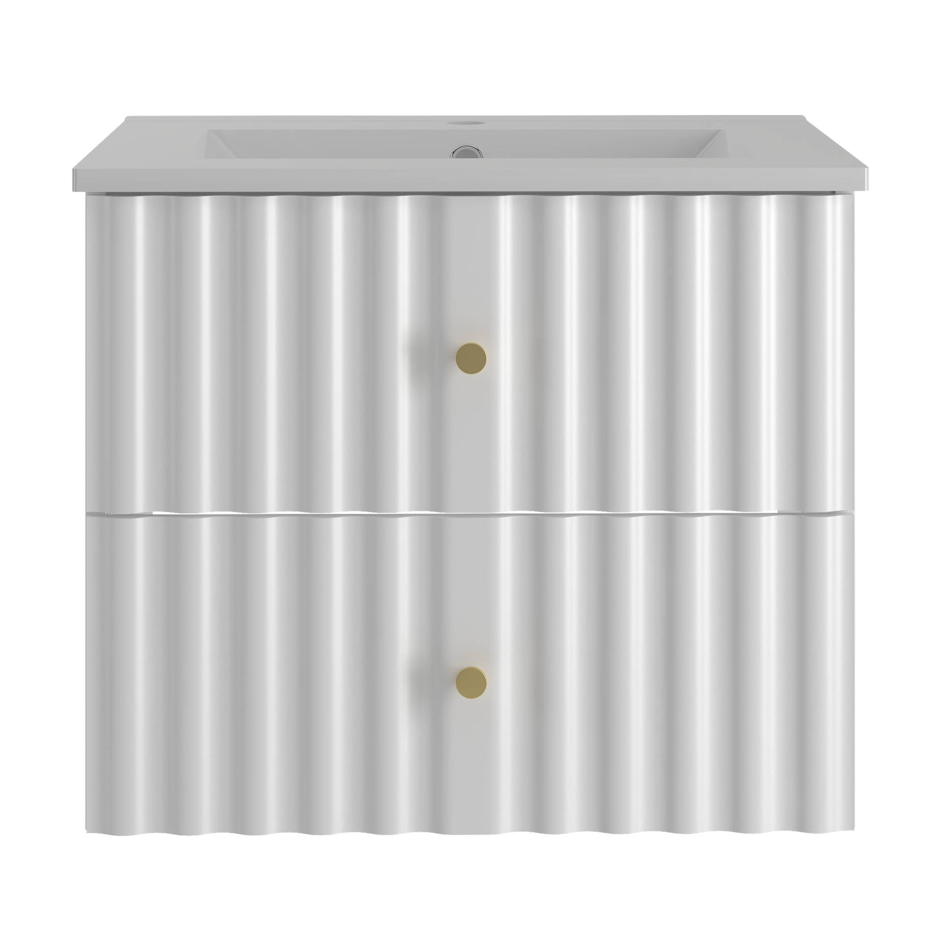 - Stylowa szafka łazienkowa AQUA-02 z umywalką to doskonałe połączenie elegancji i funkcjonalności. Wykonana z płyty MDF i laminowanej, charakteryzuje się matowym białym wykończeniem i metalowymi uchwytami w kolorze złota. Ceramiczna umywalka.