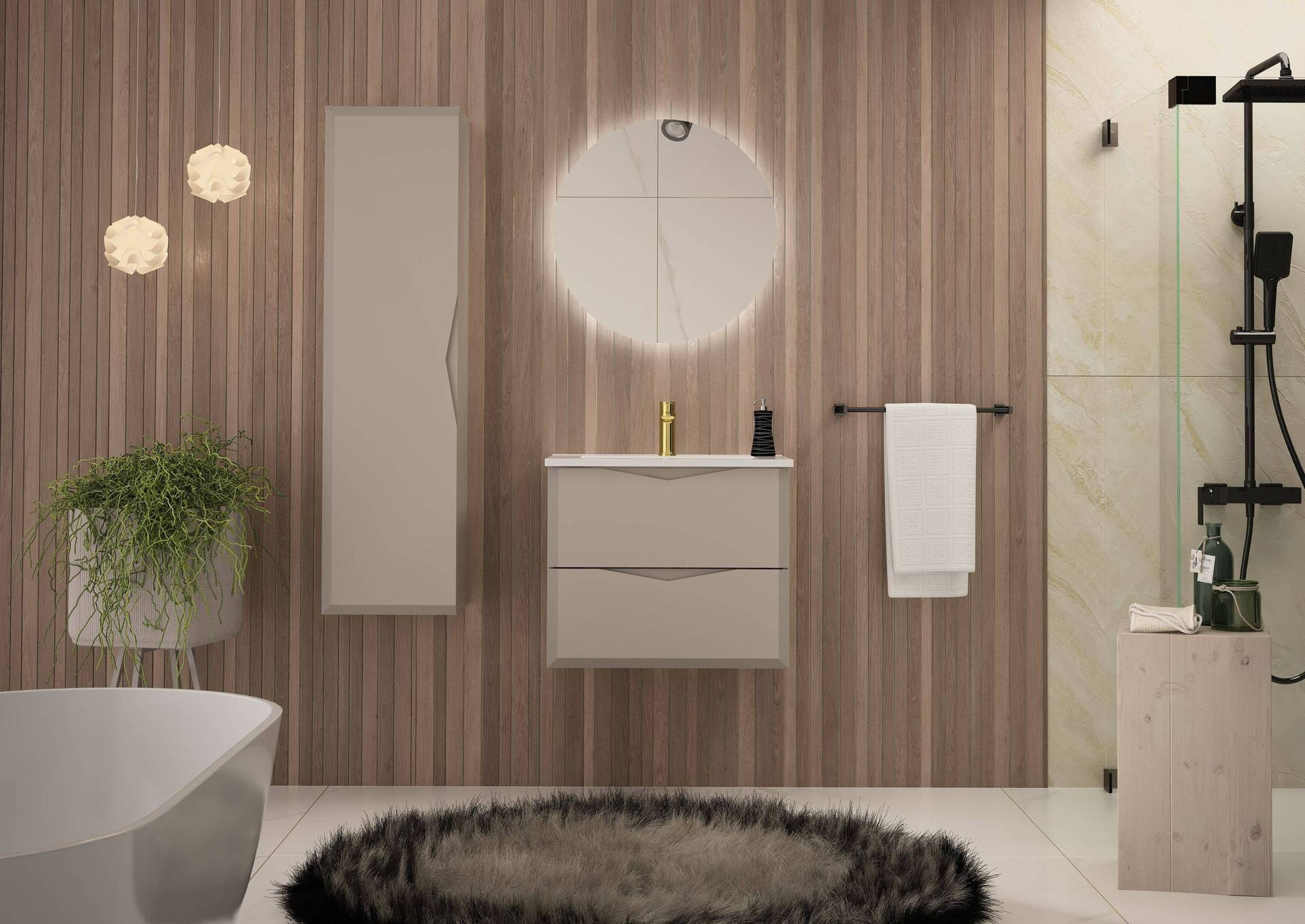 - Szafka pod umywalkę DELICA-02 marki Megstyl to elegancka alternatywa w kolorze kaszmiru. Wykonana z płyty MDF i laminowanej, oferuje wyrafinowany wygląd i praktyczność dzięki prowadnicom z cichym domykaniem. Idealna do nowoczesnych łazienek.