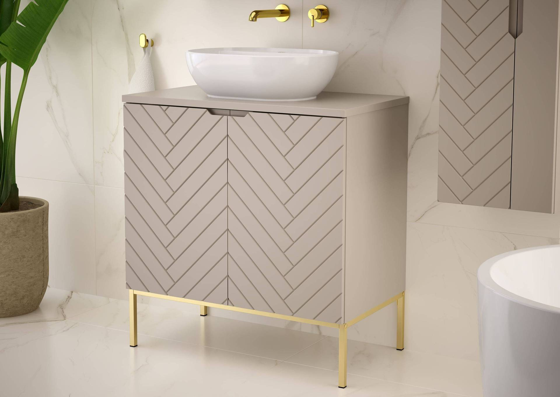 ASPEN-08 - Szafka z Umywalką i Blatem 2D 80cm Kaszmir Zestaw-2 Złoty Stelaż