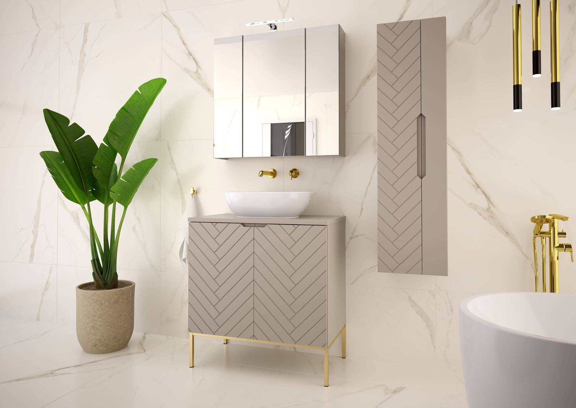 Odkryj luksus i wyjątkowy design w swojej łazience dzięki zestawowi ASPEN-08. Ta szafka z umywalką oraz blatem w kolorze kaszmiru to kwintesencja elegancji, która doskonale podkreśli nowoczesną aranżację wnętrza. Potrafi przyciągnąć uwagę swoim niebanalnym wykończeniem i subtelnym połyskiem, nadając przestrzeni niepowtarzalnego charakteru.
