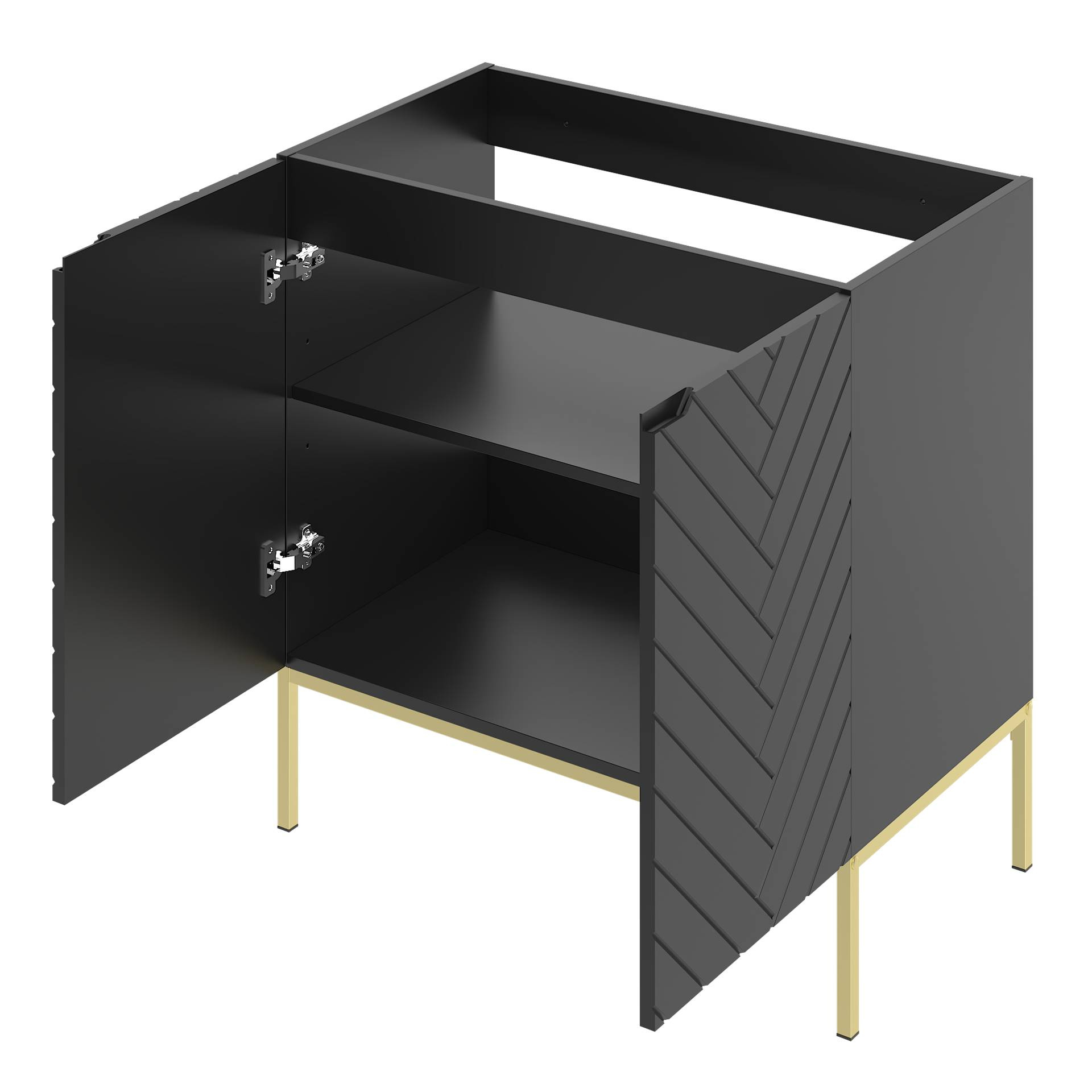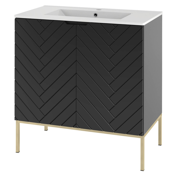 ASPEN-08 - Szafka z Umywalką 2D 80cm Czarny Mat Zestaw-3 Złoty Stelaż