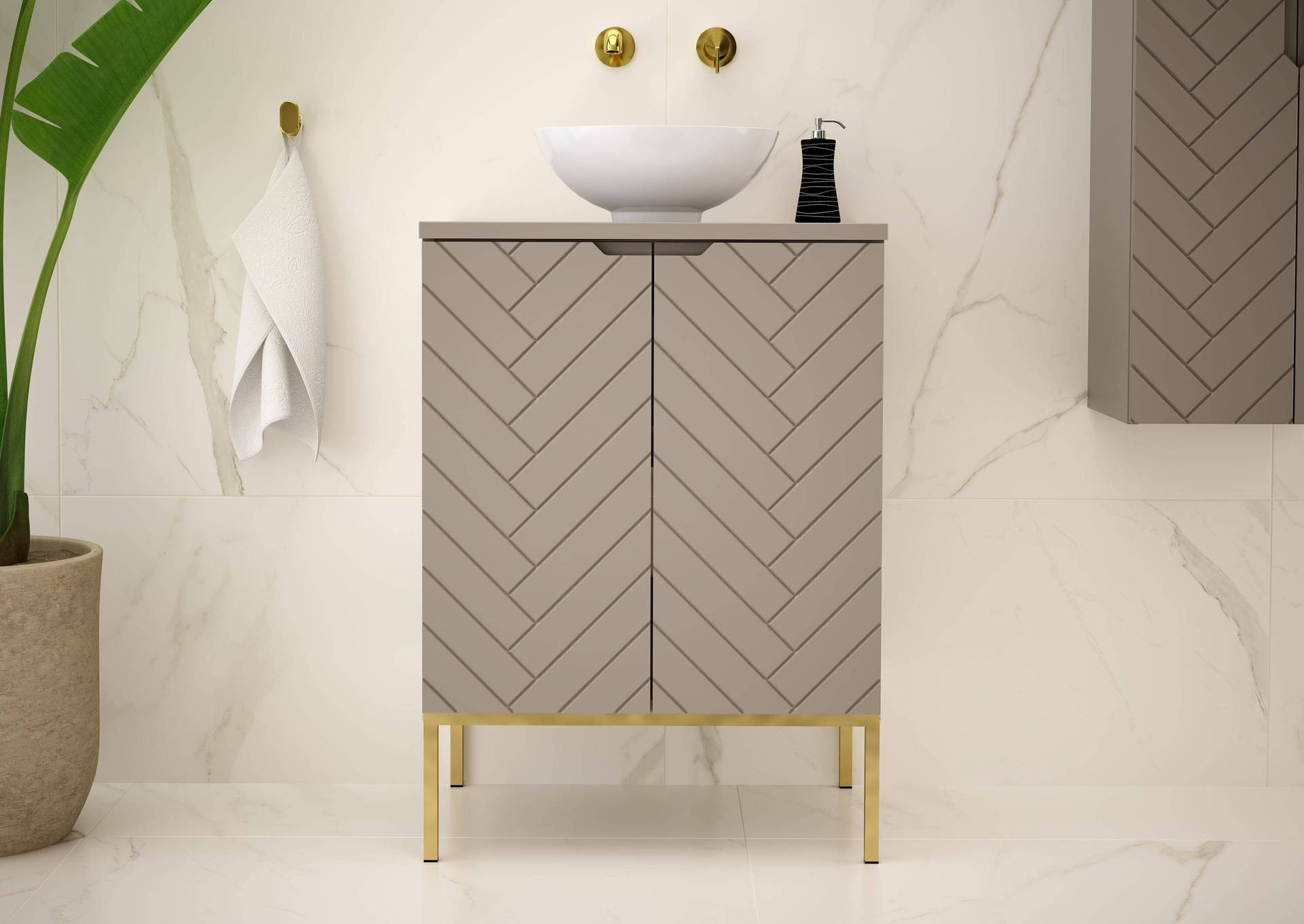 ASPEN-09 - Szafka z Umywalką i Blatem 2D 60cm Kaszmir Zestaw-2 Złoty Stelaż