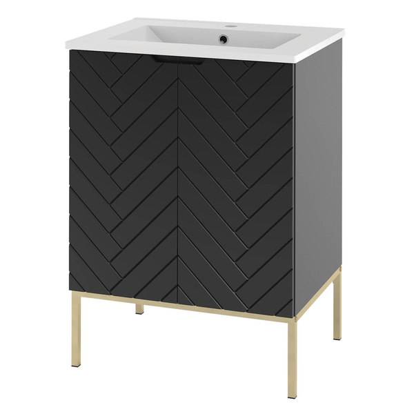 ASPEN-09 - Szafka z Umywalką 2D 60cm Czarny Mat Zestaw-3 Złoty Stelaż