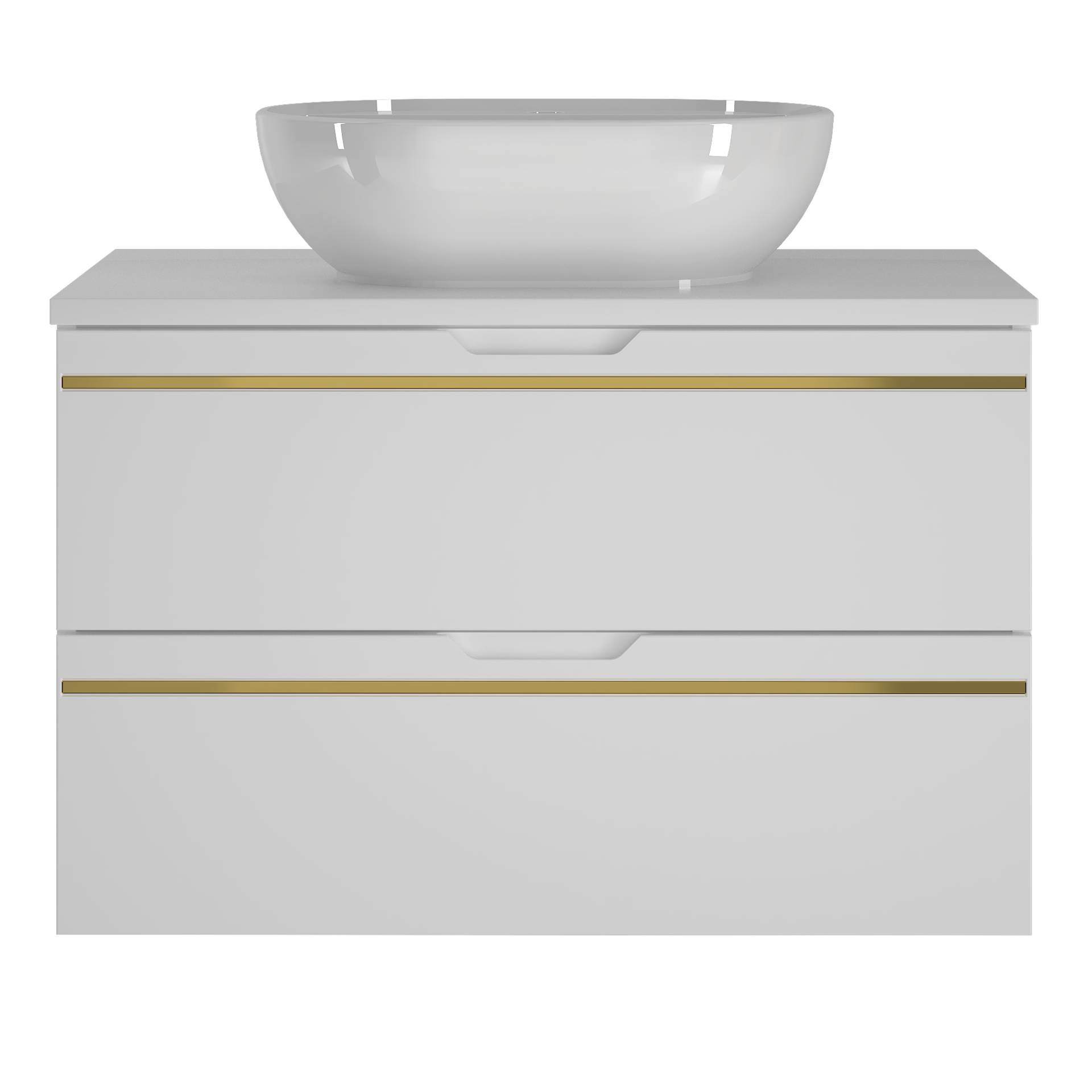 Nowoczesna szafka łazienkowa ESPERO-01 od Megstyl w białym macie. Wyposażona w ciche prowadnice i praktyczne szuflady, z nablatową, ceramiczną umywalką o połyskującym wykończeniu. Idealna do eleganckiego wnętrza, z możliwością samodzielnego montażu.
