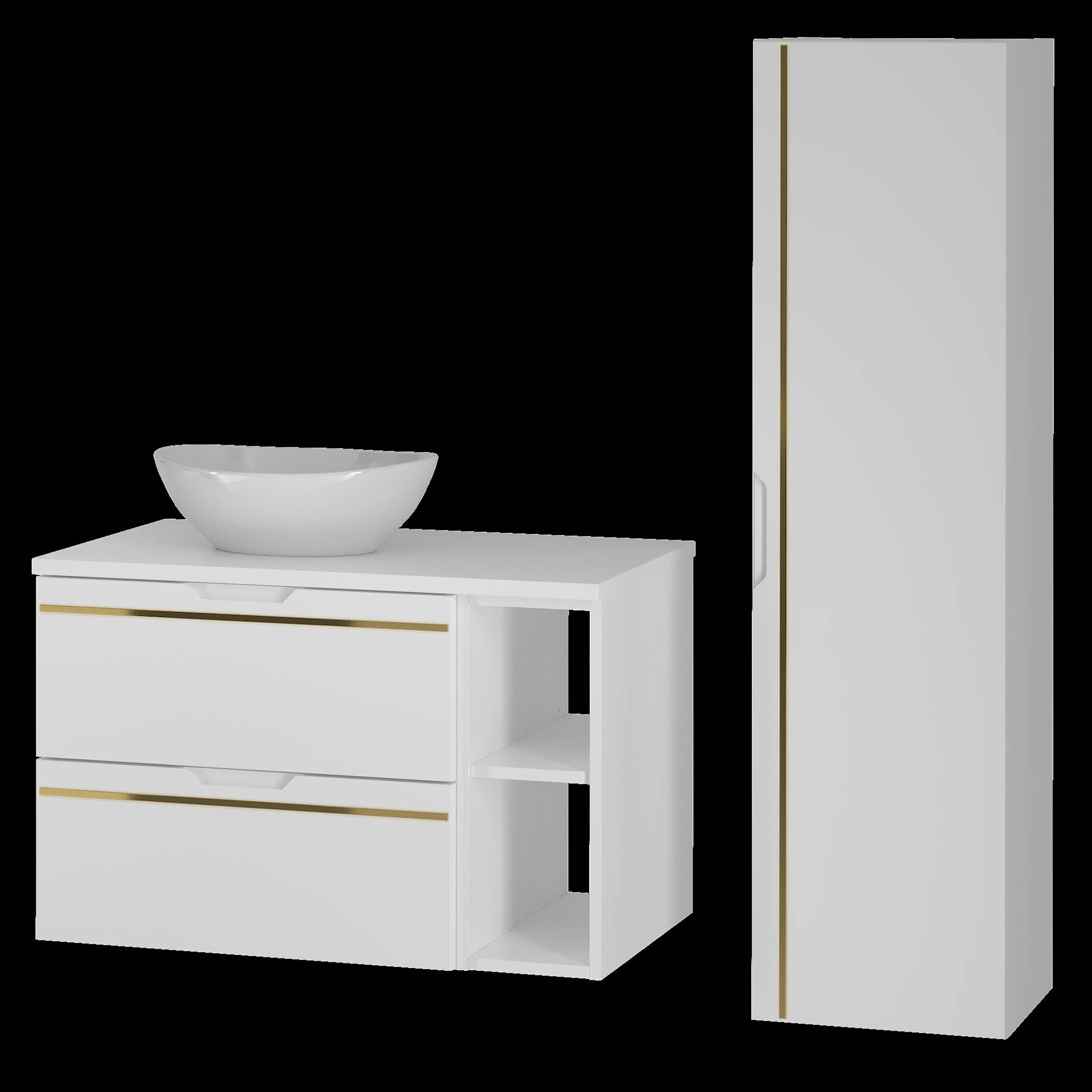 ESPERO-02 - Szafka pod Umywalkę z Blatem i Regałem 2S 80cm Biały Mat Zestaw-4