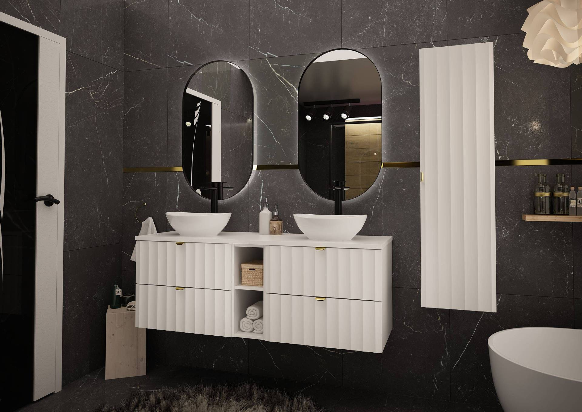 Zanurz się w elegancji nowoczesnego minimalizmu z zestawem ARCOS-06 marki Megstyl, który przekształci Twoją łazienkę w oazę stylu i funkcjonalności. Szafka pod umywalkę o szerokości 140 cm w wykończeniu białego matu to synonim nowoczesnego luksusu, który świetnie wpisuje się w każde wnętrze, tworząc harmonijną przestrzeń. Subtelne akcenty w kolorze szczotkowanego złota dodają całości niepowtarzalnego charakteru, podkreślając wyrafinowany gust właściciela.