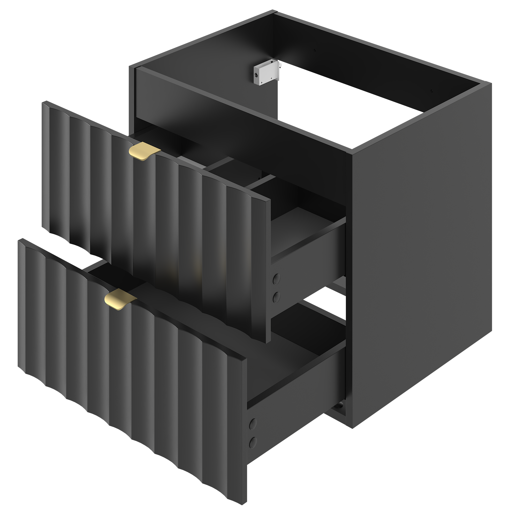 ARCOS-06, klasyczna i nowoczesna szafka z umywalką, przyciąga wzrok swoim czarnym matowym wykończeniem. To doskonały wybór dla osób, które pragną dodać swoim łazienkom odrobinę luksusu. Minimalistyczny design, łączący w sobie elegancję i funkcjonalność, idealnie komponuje się z różnymi stylami wnętrz. Metalowe uchwyty w kolorze szczotkowanego złota subtelnie przełamują monochromatyczną kolorystykę, dodając całości niepowtarzalnego charakteru.