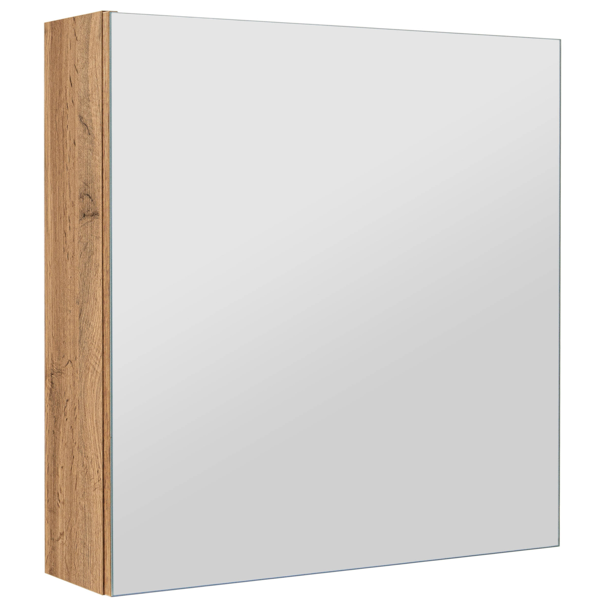 Szafka Astor z lustrem w stylowym kolorze Dąb Wotan to elegancka propozycja do każdej łazienki. Wykonana z płyty laminowanej, wyposażona w funkcję cichego domyku, oferuje praktyczne rozwiązanie do przechowywania i nowoczesny wygląd.