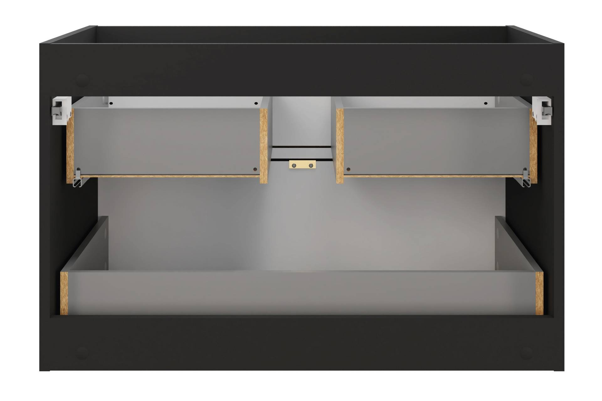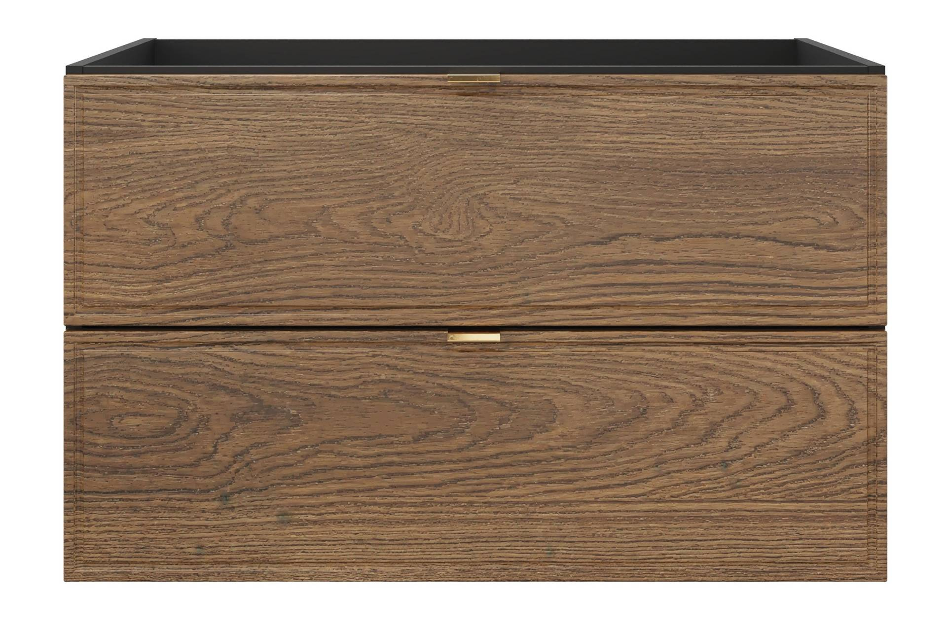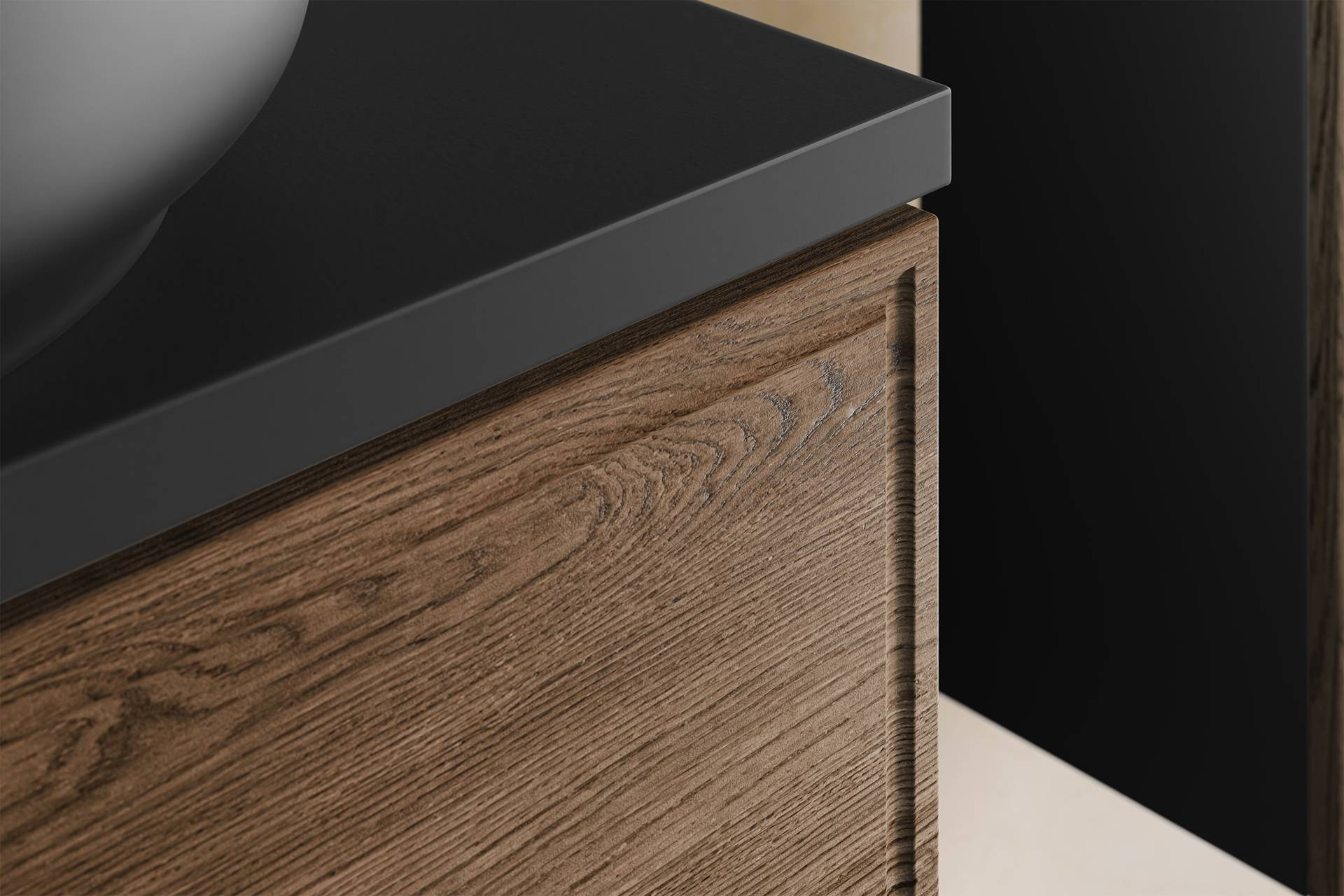 Szafka pod umywalkę Talia Casella łączy elegancję z nowoczesnością. Wykonana z trwałych materiałów, zachwyca matową czernią oraz naturalnym dekorem Dąb Casella. Dwie szuflady z cichym domykaniem pomieszczą wszystkie akcesoria.
