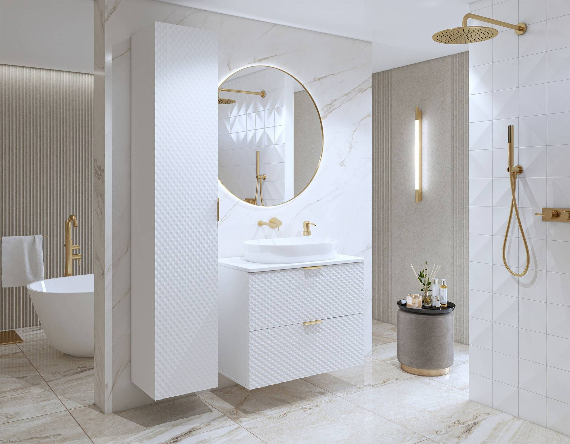 Odkryj elegancję i funkcjonalność w jednym dzięki szafce pod umywalkę Laura od marki Helvetia. Ta stylowa szafka 80 cm w kolorze białym matowym doskonale wpasuje się w każdą nowoczesną łazienkę, nadając jej wyjątkowego charakteru. Złote uchwyty to elegancki akcent, który podkreśla minimalistyczny wygląd, wprowadzając do wnętrza odrobinę luksusu.