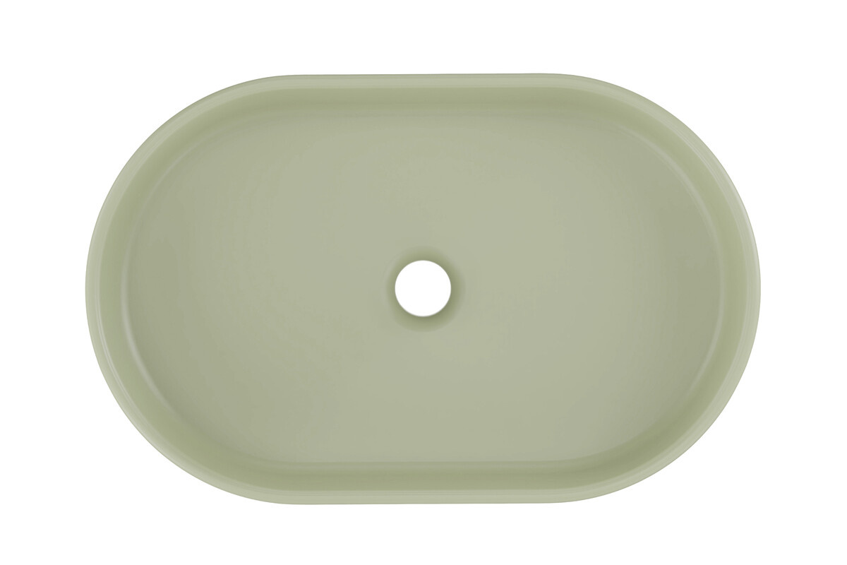 Umywalka nablatowa ceramiczna RIVER 2 w kolorze Olive Green dopełnia zestaw, wprowadzając do wnętrza świeżość i naturalność. Jej owalny kształt i matowe wykończenie świetnie harmonizują z resztą mebli, podkreślając ich nowoczesny design. Zestaw nie tylko wspaniale prezentuje się wizualnie, ale także jest praktyczny – umywalka idealnie sprawdzi się w codziennym użytkowaniu, oferując komfort i funkcjonalność.