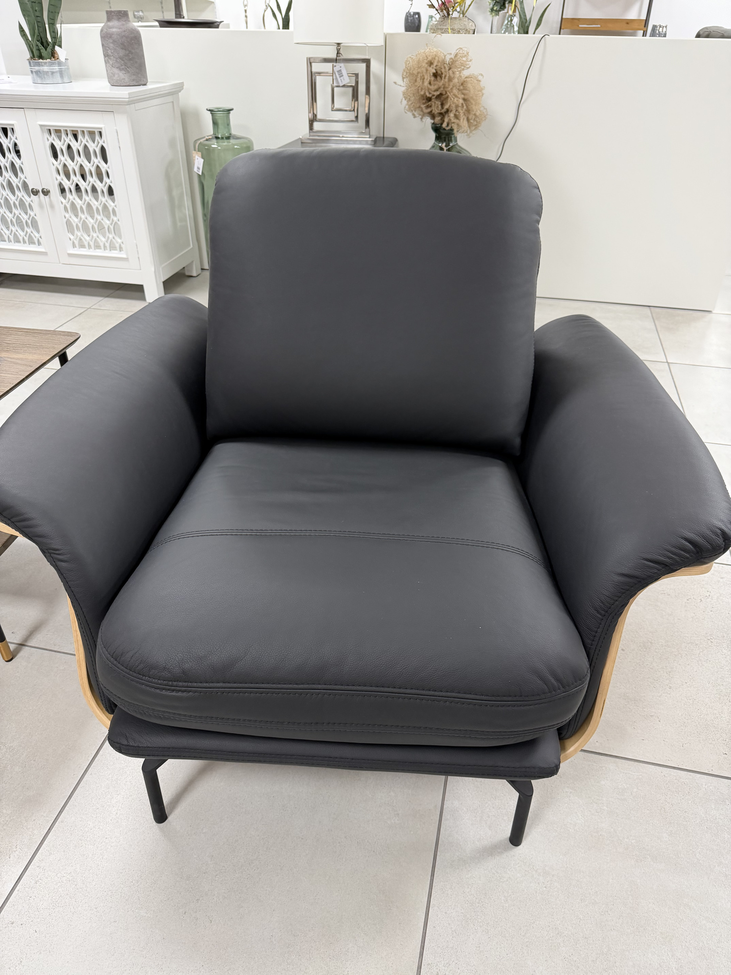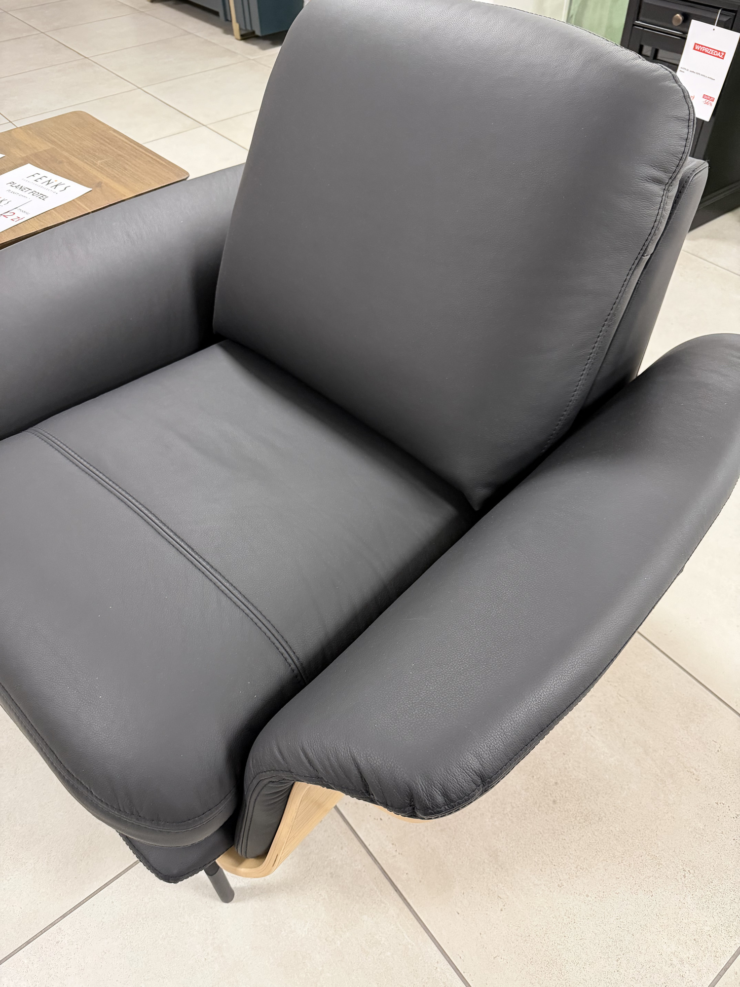 Tapicerowany wysokiej jakości skórą w kolorze Nero (czarny), fotel prezentuje się niezwykle stylowo i doskonale wpisuje się zarówno w nowoczesne, jak i bardziej klasyczne wnętrza. Miękkie, szerokie siedzisko oraz wygodne oparcie zapewniają wysoki komfort podczas codziennego relaksu — czy to przy kawie, książce, czy wieczornym odpoczynku.
