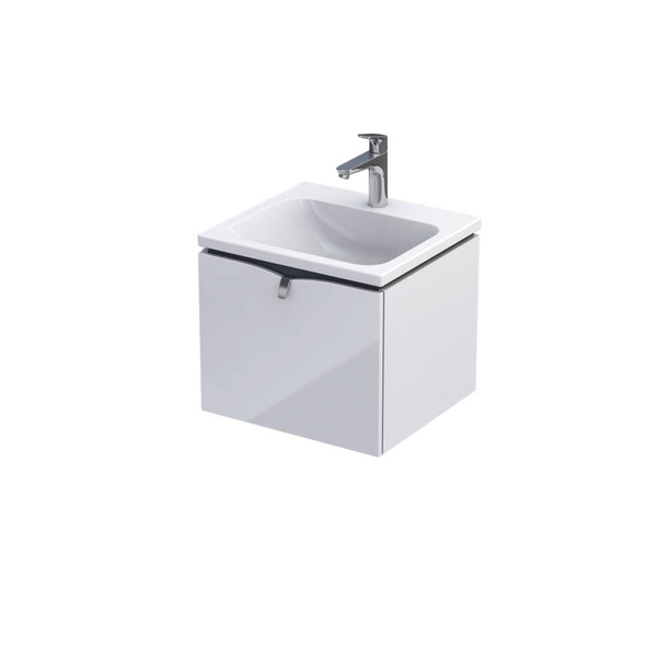 • Szafka pod umywalkę o szerokości 50 cm w kolorze biały połysk z jedną szufladą.